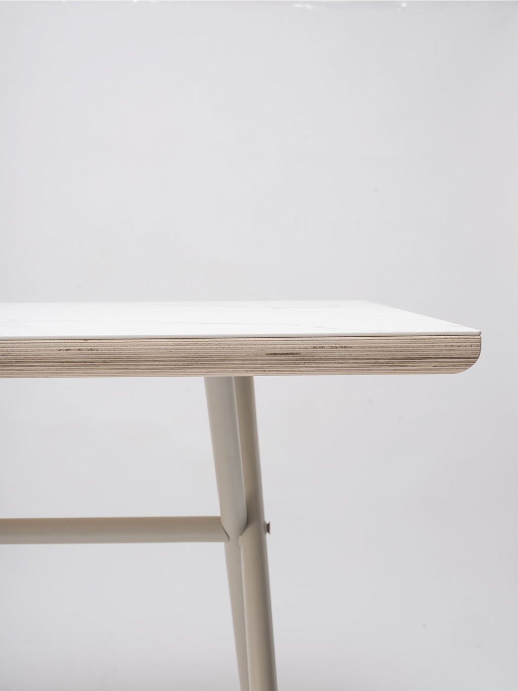 Стол Бай с крестообразными ножками, сохраняющий особенность своего оригинального дизайна. Стальная конструкция, рационалистичная и футуристичная, прибыла, чтобы победить.