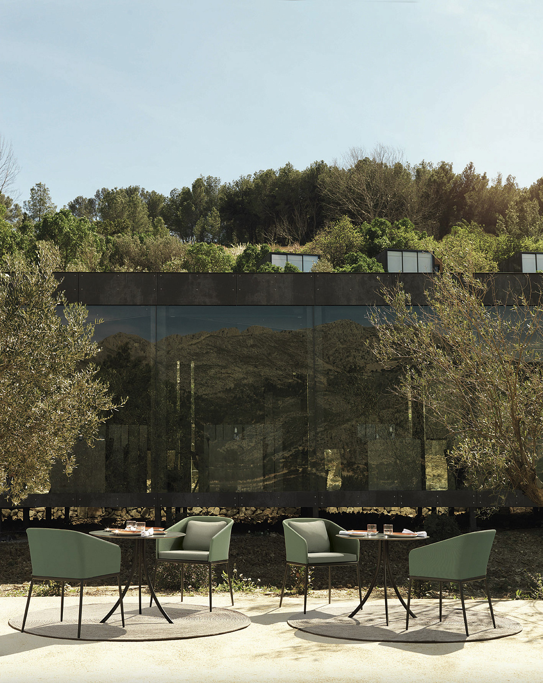 Конструкция изготовлена из овальной трубы из нержавеющей стали, покрытой полиэфирным порошком. Варианты столешниц: HPL Trespa® толщиной 13 мм/0,51 дюйма и Dekton® толщиной 8 мм/0,31 дюйма.