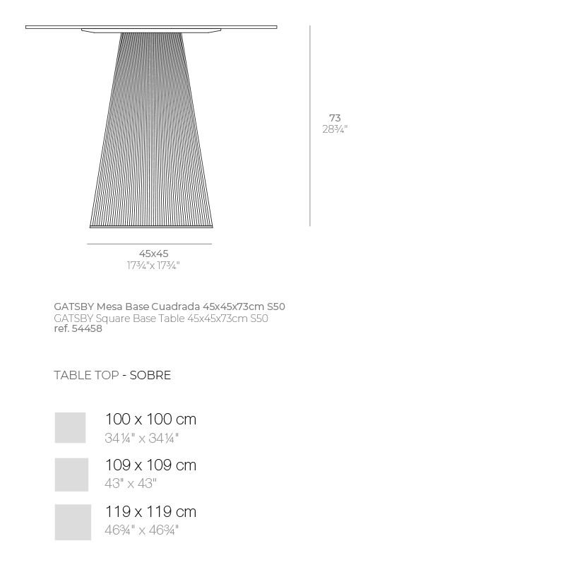Обеденный стол Gatsby 45x45x73cm s50 (столешница 100,109,119)