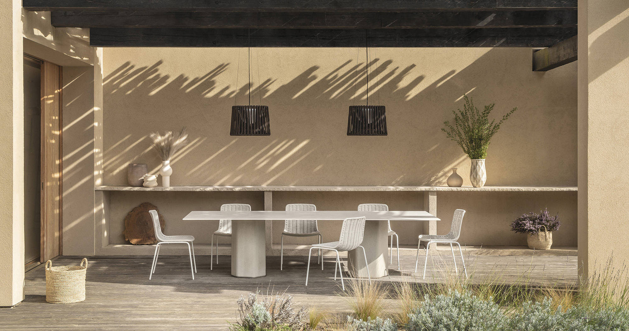 Прямоугольный обеденный стол Talo для улицы - бетонная основа UHPC, состоящая из природных минеральных компонентов и органических волокон (неметаллических), которые обеспечивают исключительную устойчивость к атмосферным воздействиям. Варианты столешниц: HPL Trespa® толщиной 13 мм/0,51 дюйма, FENIX NTM® толщиной 12 мм/0,47 дюйма и Dekton® толщиной 12 мм/0,31 дюйма.