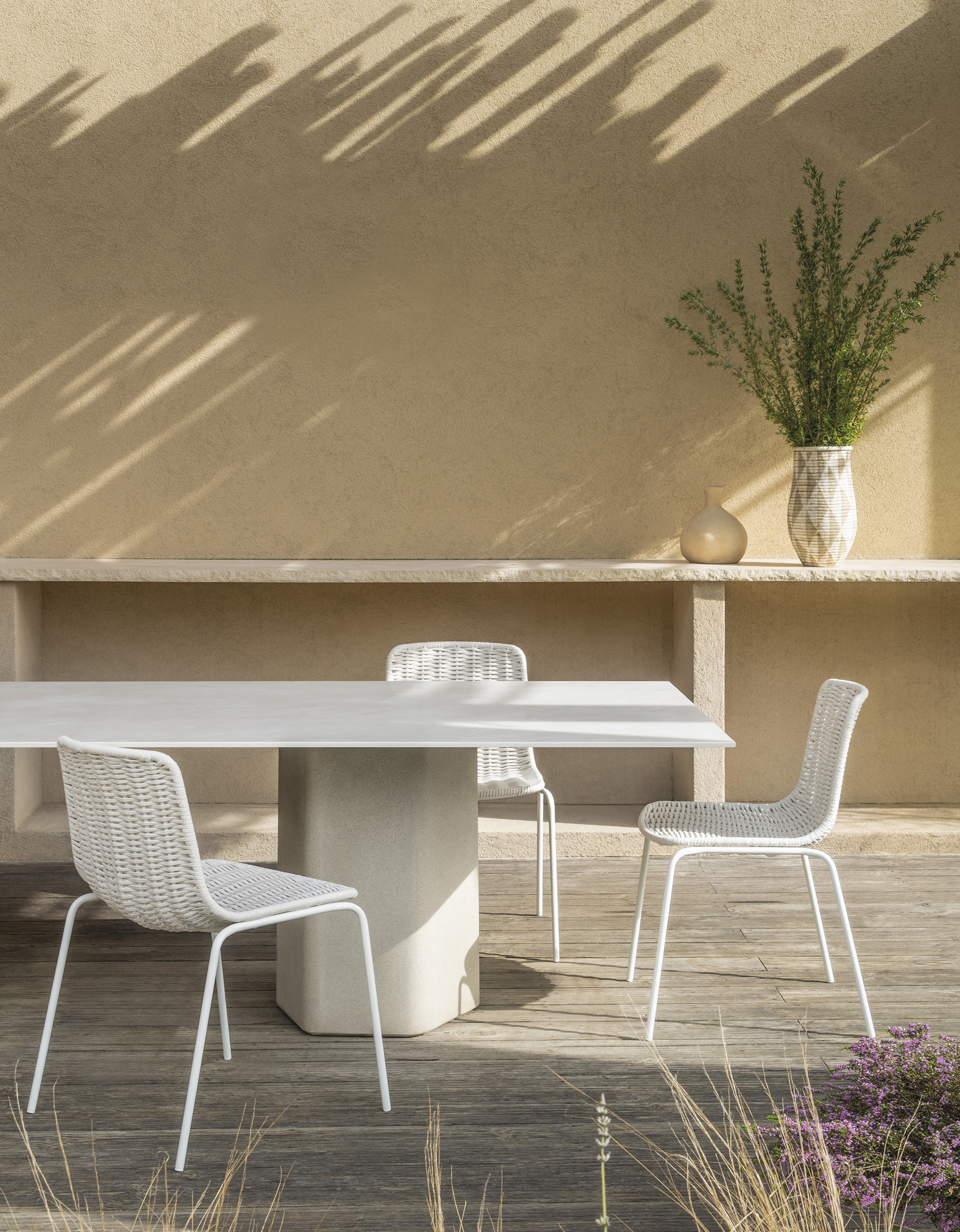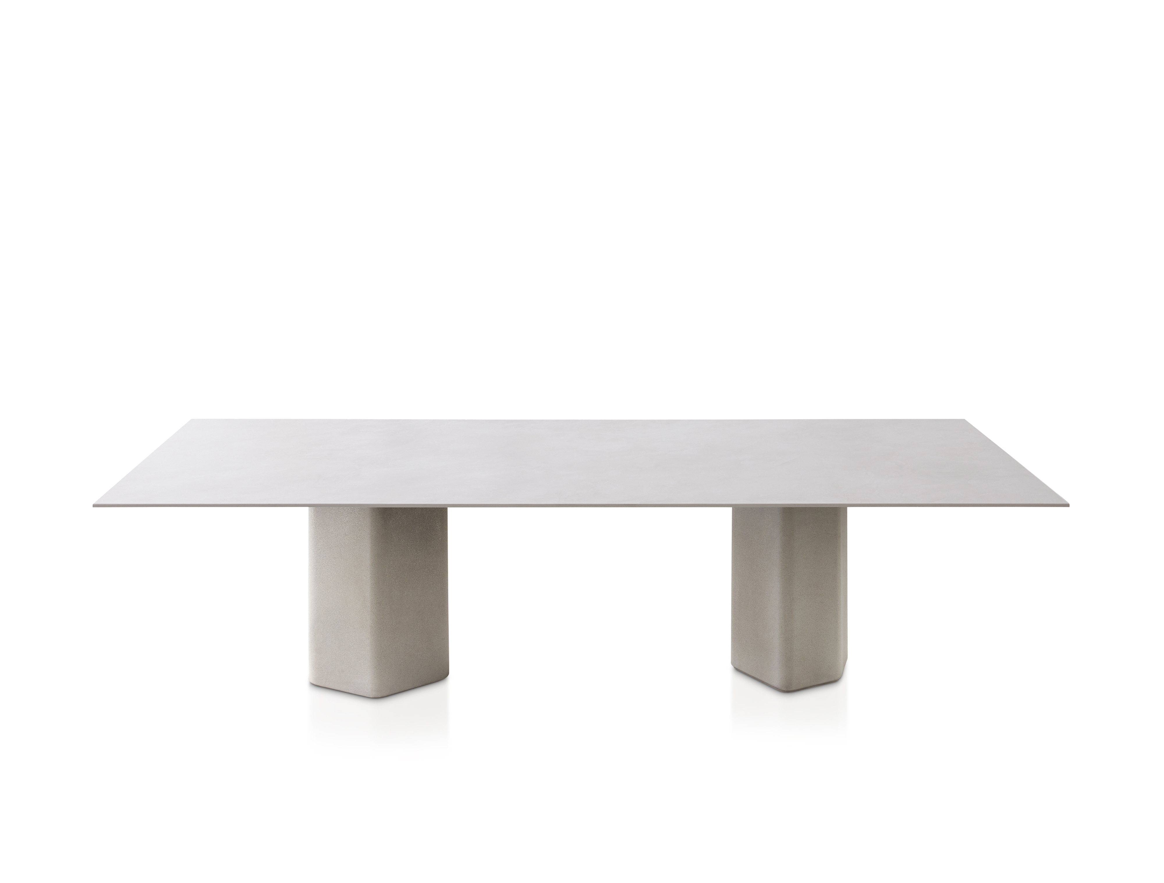 Прямоугольный обеденный стол Talo для улицы - бетонная основа UHPC, состоящая из природных минеральных компонентов и органических волокон (неметаллических), которые обеспечивают исключительную устойчивость к атмосферным воздействиям. Варианты столешниц: HPL Trespa® толщиной 13 мм/0,51 дюйма, FENIX NTM® толщиной 12 мм/0,47 дюйма и Dekton® толщиной 12 мм/0,31 дюйма.