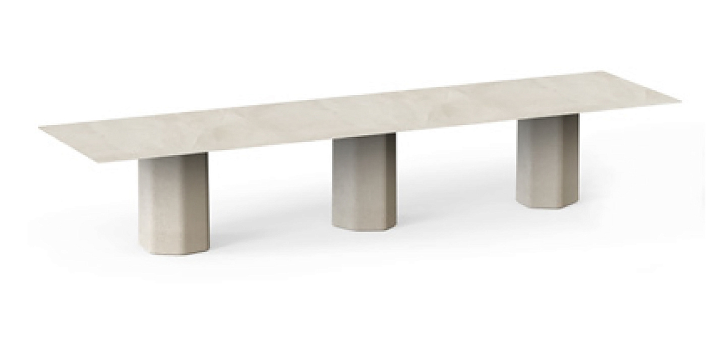 Прямоугольный обеденный стол Talo для улицы - бетонная основа UHPC, состоящая из природных минеральных компонентов и органических волокон (неметаллических), которые обеспечивают исключительную устойчивость к атмосферным воздействиям. Варианты столешниц: HPL Trespa® толщиной 13 мм/0,51 дюйма, FENIX NTM® толщиной 12 мм/0,47 дюйма и Dekton® толщиной 12 мм/0,31 дюйма.