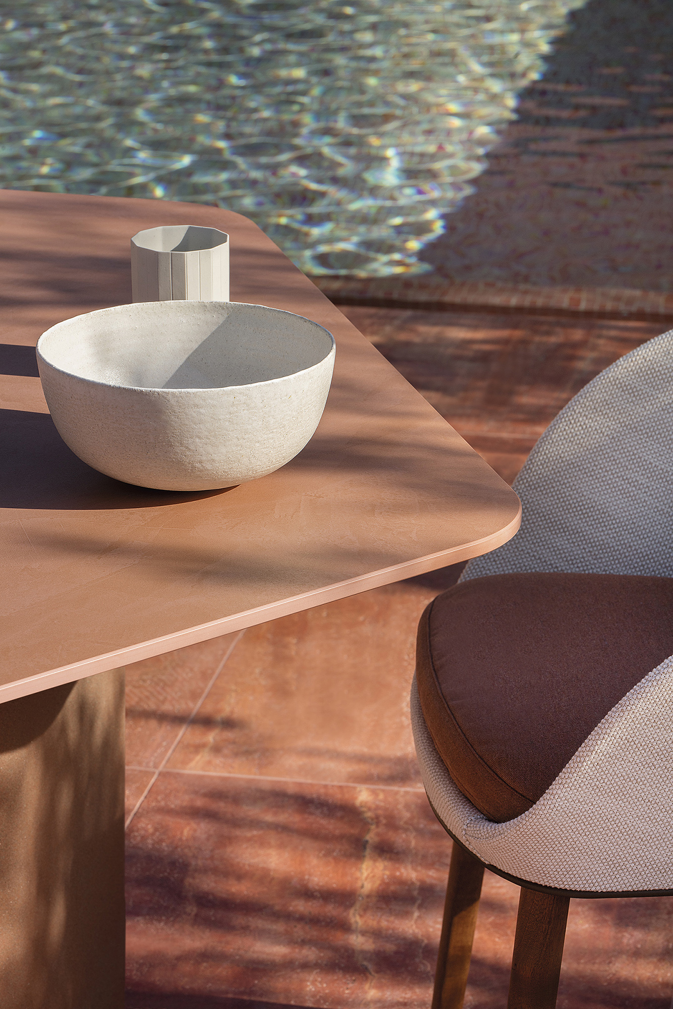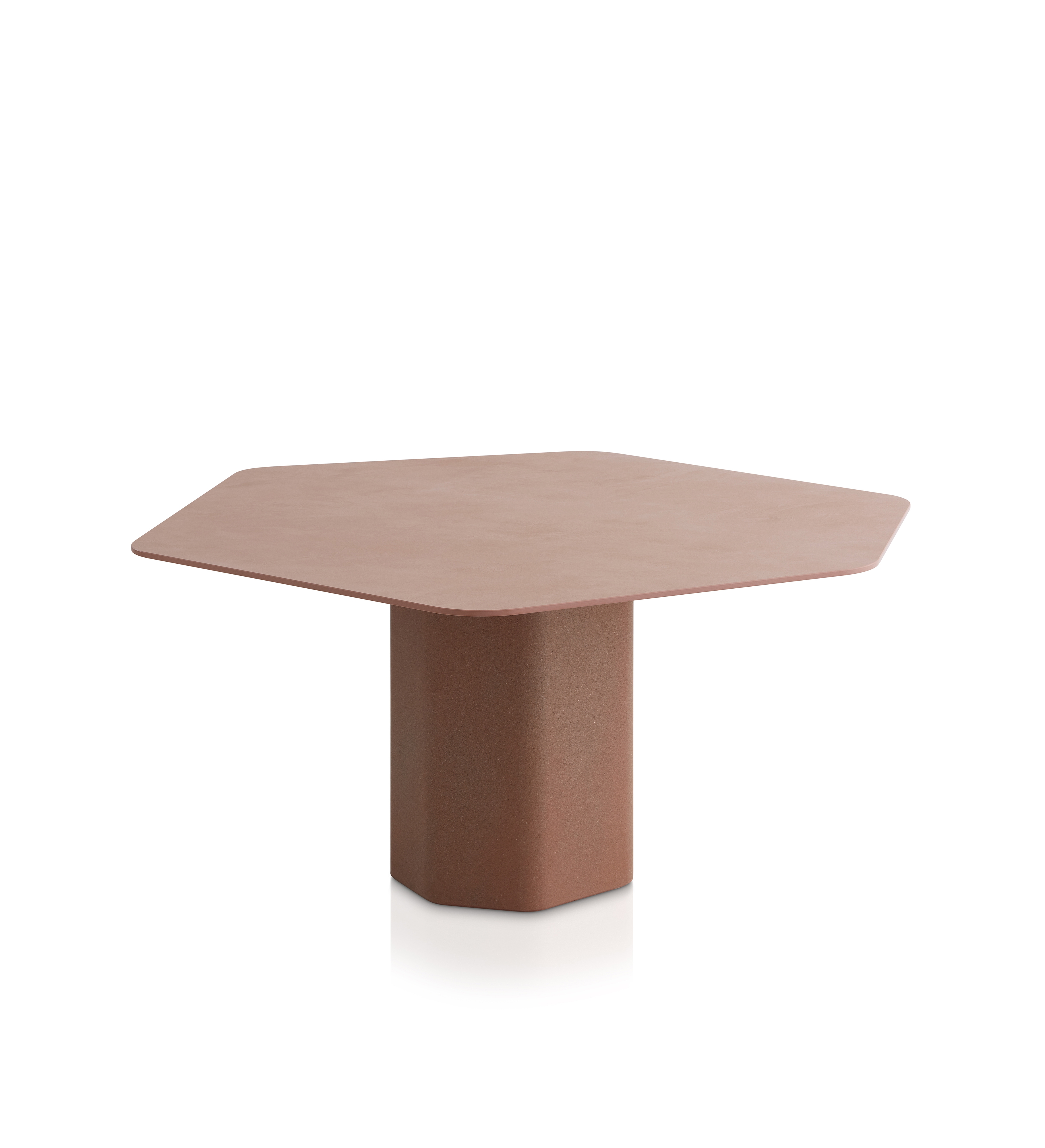 Шестиугольный обеденный стол Talo для улицы - бетонная основа UHPC, состоящая из природных минеральных компонентов и органических волокон (неметаллических), которые обеспечивают исключительную устойчивость к атмосферным воздействиям. Варианты столешниц: HPL Trespa® толщиной 13 мм/0,51 дюйма, FENIX NTM® толщиной 12 мм/0,47 дюйма и Dekton® толщиной 12 мм/0,31 дюйма.