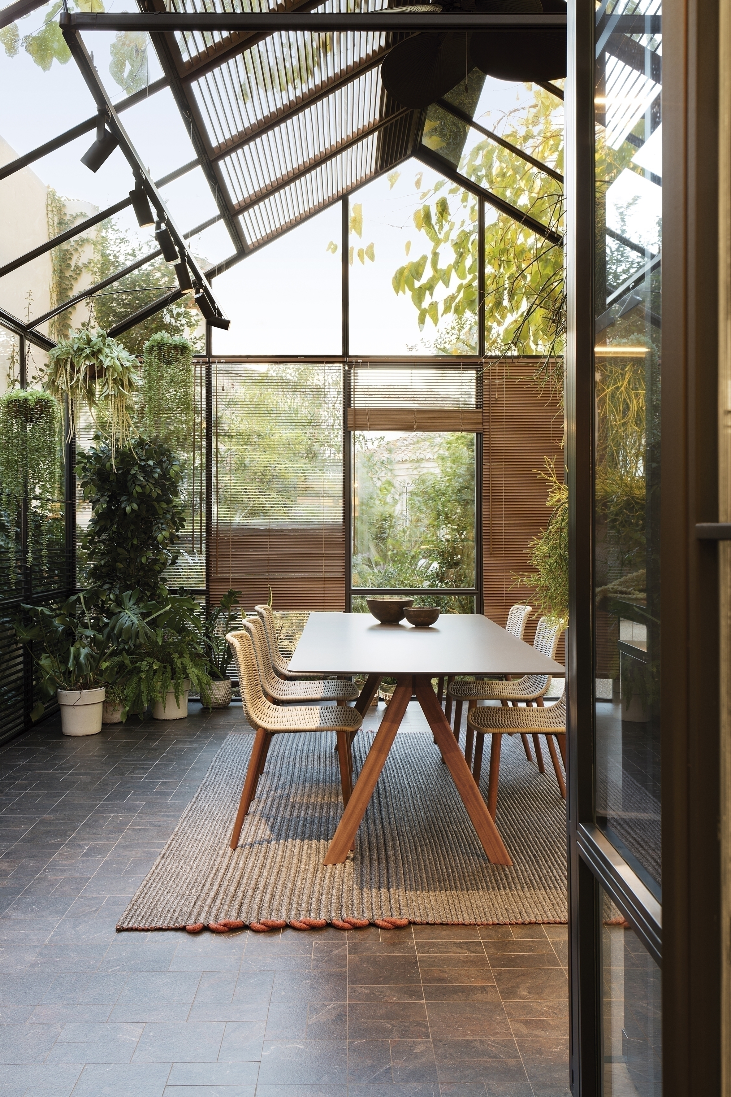 Прямоугольный обеденный стол с каркасом из высокопрочного алюминиевого профиля, отделкой из полиэфирного порошка и ножками из древесины сапеле. Варианты столешниц: HPL Trespa® толщиной 13 мм/0,51 дюйма и Dekton® толщиной 8 мм/0,31 дюйма. Поставляется в разобранном виде.