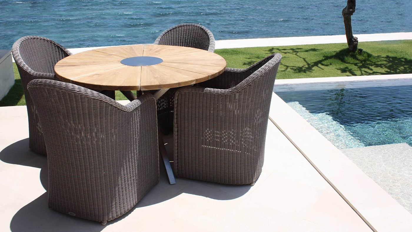 Одна из последних разработок в нашем новом каталоге. Сочетание черного алюминия, темно-серых ремешков и подлокотников из тикового дерева создает универсальную коллекцию, идеально подходящую как городским экстерьерам, так и пространствам для отдыха.