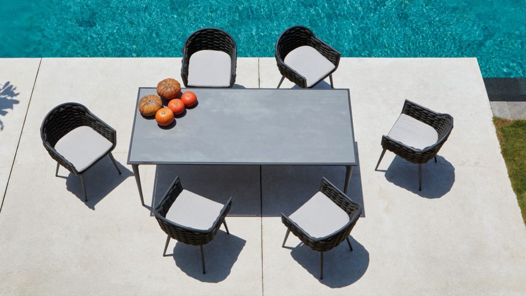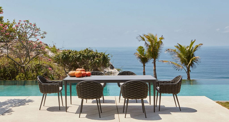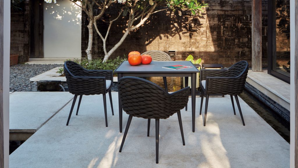 Современные органичные формы из алюминиевой рамы в сочетании с ручной оплёткой из синтетического шнура, делают эту коллекцию идеальным выбором для любого пространства.