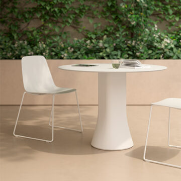 Стол Cambio для улицы расширяет офис снаружи, привнося новые способы сотрудничества и командной работы на открытом воздухе. Cambio, определяемый единым центральным основанием с бесшовным силуэтом, представляет собой минималистскую игру геометрии, основанную на переходе от квадратной к круглой форме, возвращая нас к нашим истокам. Его конструкция, доступная в различных размерах, сочетается с выбором столешниц с различной отделкой, подходящих для отдыха, обедов или встреч на открытом воздухе.