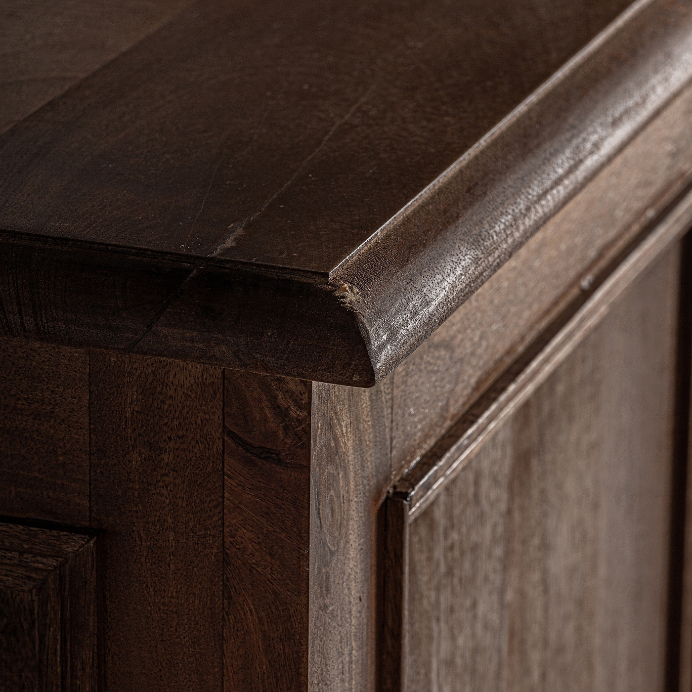 Письменный стол, коричневый цвет, колониальный стиль. Изготовлен из железнодорожной древесины.