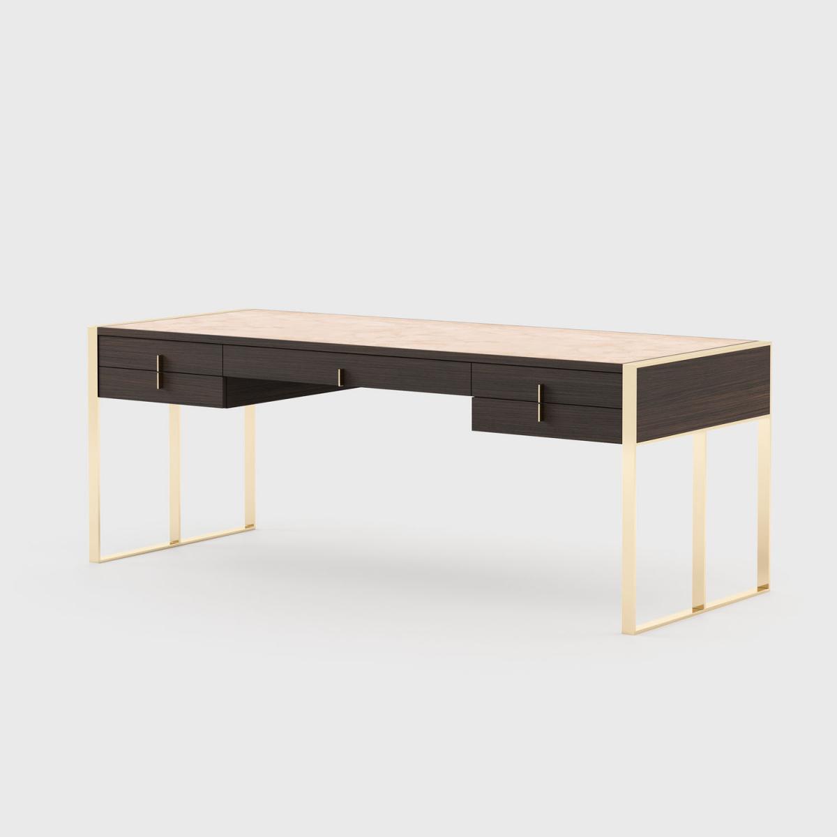 Allie – письменный стол с деревянной столешницей и металлической структурой. Обитая поверхность этого стола придает более мягкий вид и комфортную обстановку в течение тяжелых дней работы.