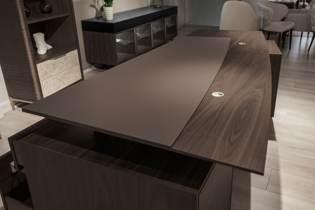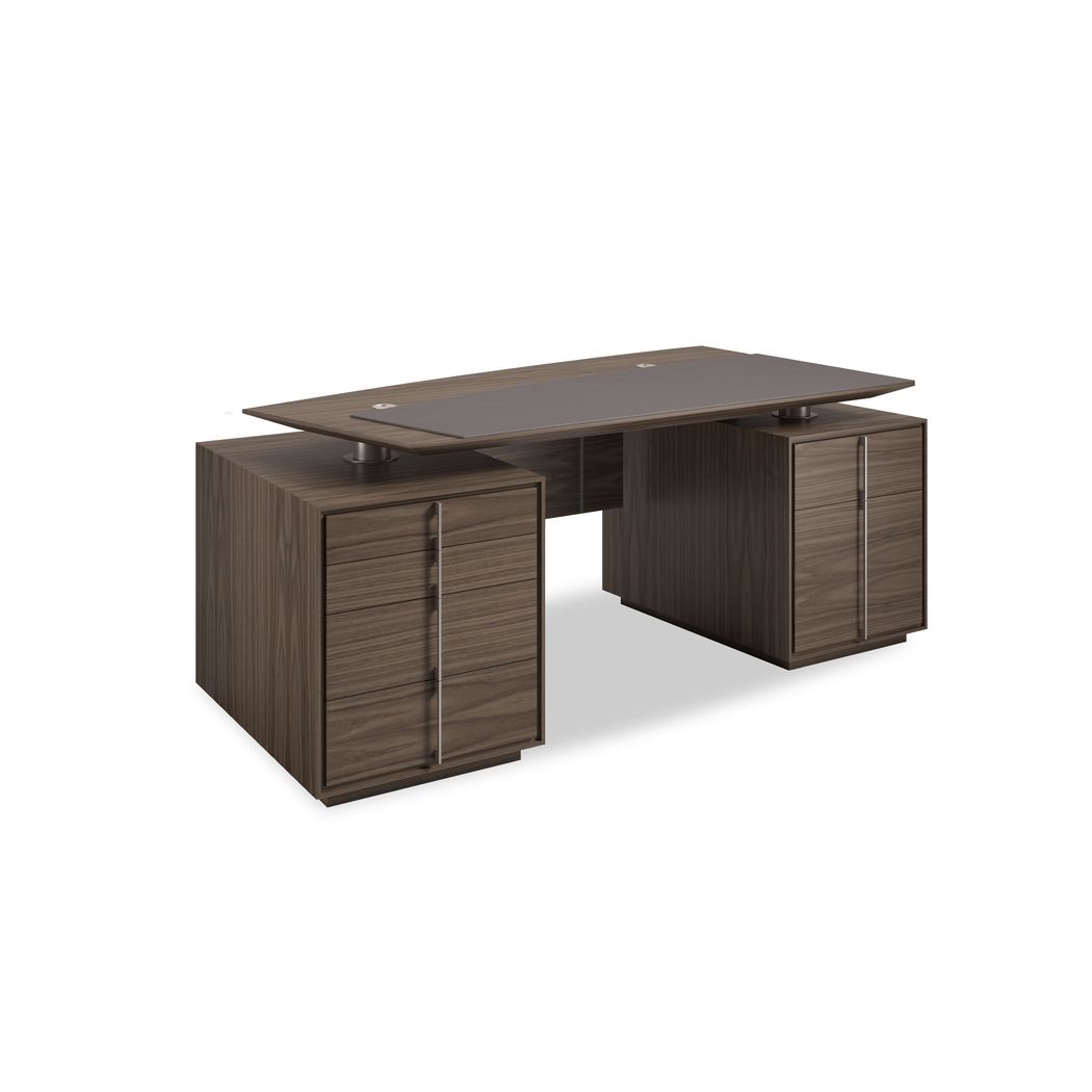 Преобразите свое рабочее пространство с помощью офисного стола Connect Executive — универсального дополнения к коллекции Connect. Этот стол, созданный для эффективной работы и придания стиля, отличается обтекаемыми формами и высочайшим качеством изготовлени Кожаная верхняя часть. 2 люверса сверху. Левая тумба с 4 выдвижными ящиками. Правая тумба с 2 выдвижными ящиками, один из которых предназначен для хранения документов. Замки расположены на внутренней стороне каждой тумбы. Все ящики оснащены системой плавного закрывания