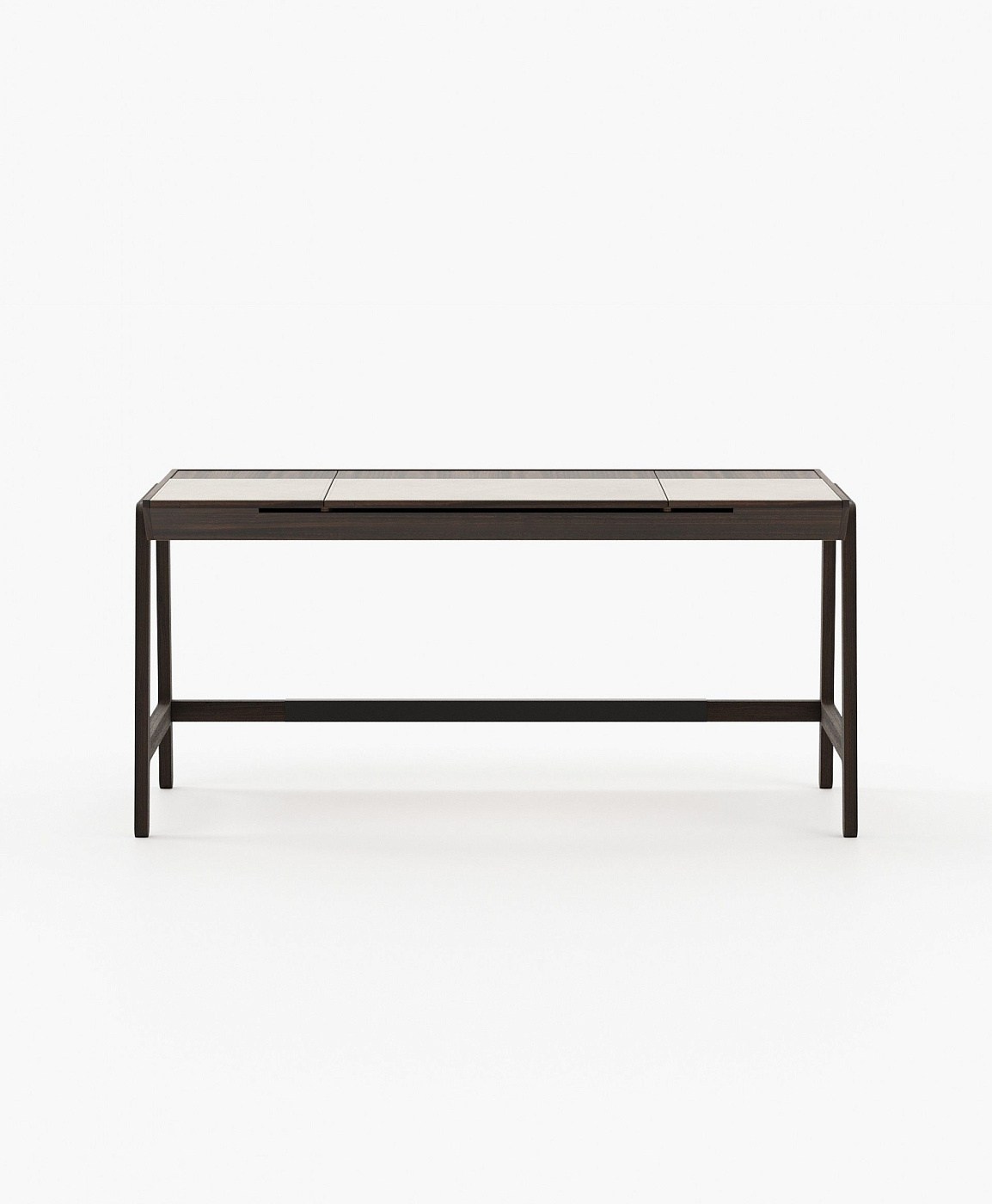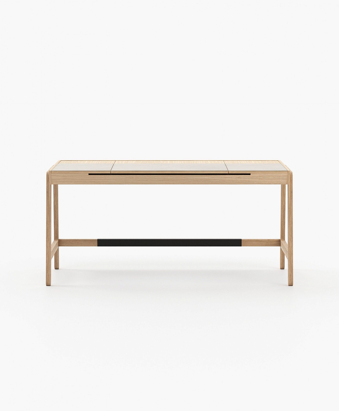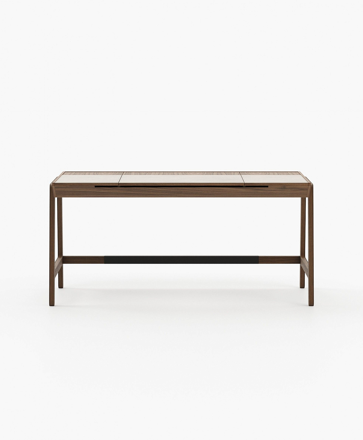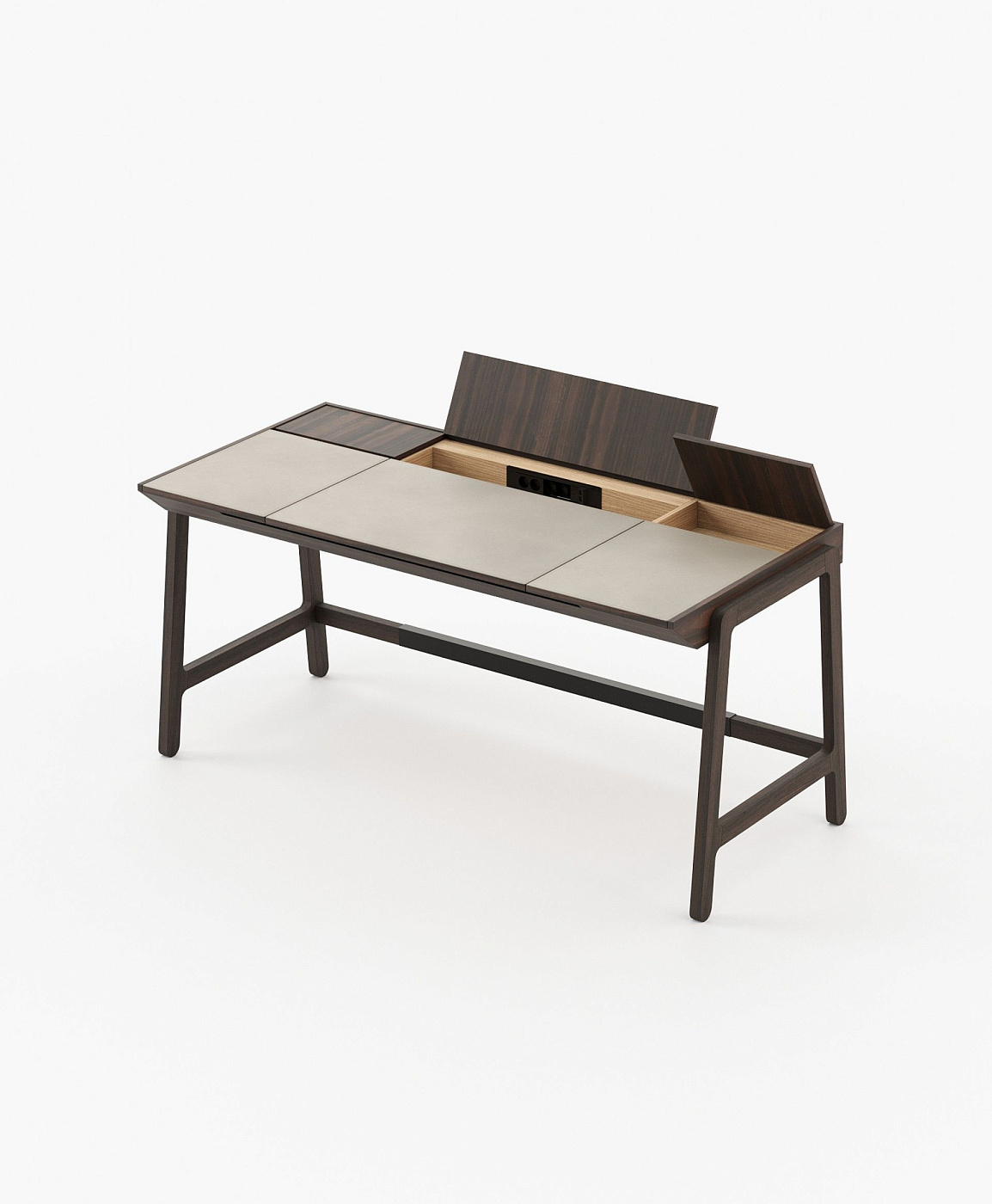 Офисный стол Gatsby привносит в рабочее пространство ощущение изящества и целеустремленности. Столешница с четкими и простыми линиями оснащена поднимающейся крышкой, обтянутой кожей, что придает текстуру и привлекательность рабочей обстановке.