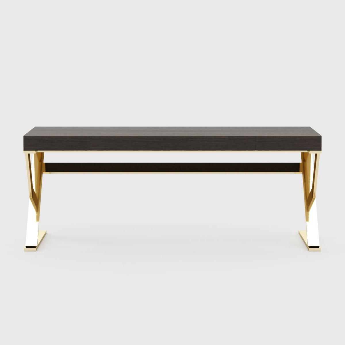 Ivy – деревянный письменный стол со скрещенными металлическими ножками, представленный из нержавеющей стали с лакированным верхом. Идеально подходит для эксклюзивного офисного декора, где принимают важные решения и проходят рабочие процессы. Это изделие идеально отражает ДНК бренда Laskasas.