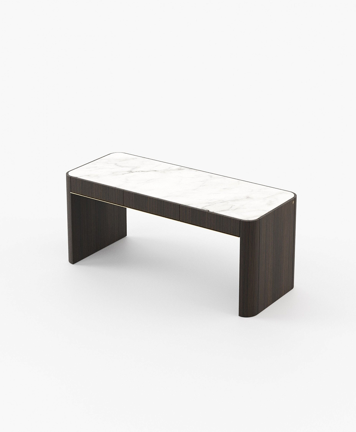 Письменный стол Larson - очаровательное и практичное изделие. Он отличается великолепной столешницей из мрамора или с другой отделкой и лаконичным дизайном, который дополнит самые разные интерьеры. Наиболее распространенным вариантом является письменный стол с 3 выдвижными ящиками, который обеспечивает достаточно места для хранения предметов первой необходимости, но доступны и другие конфигурации.