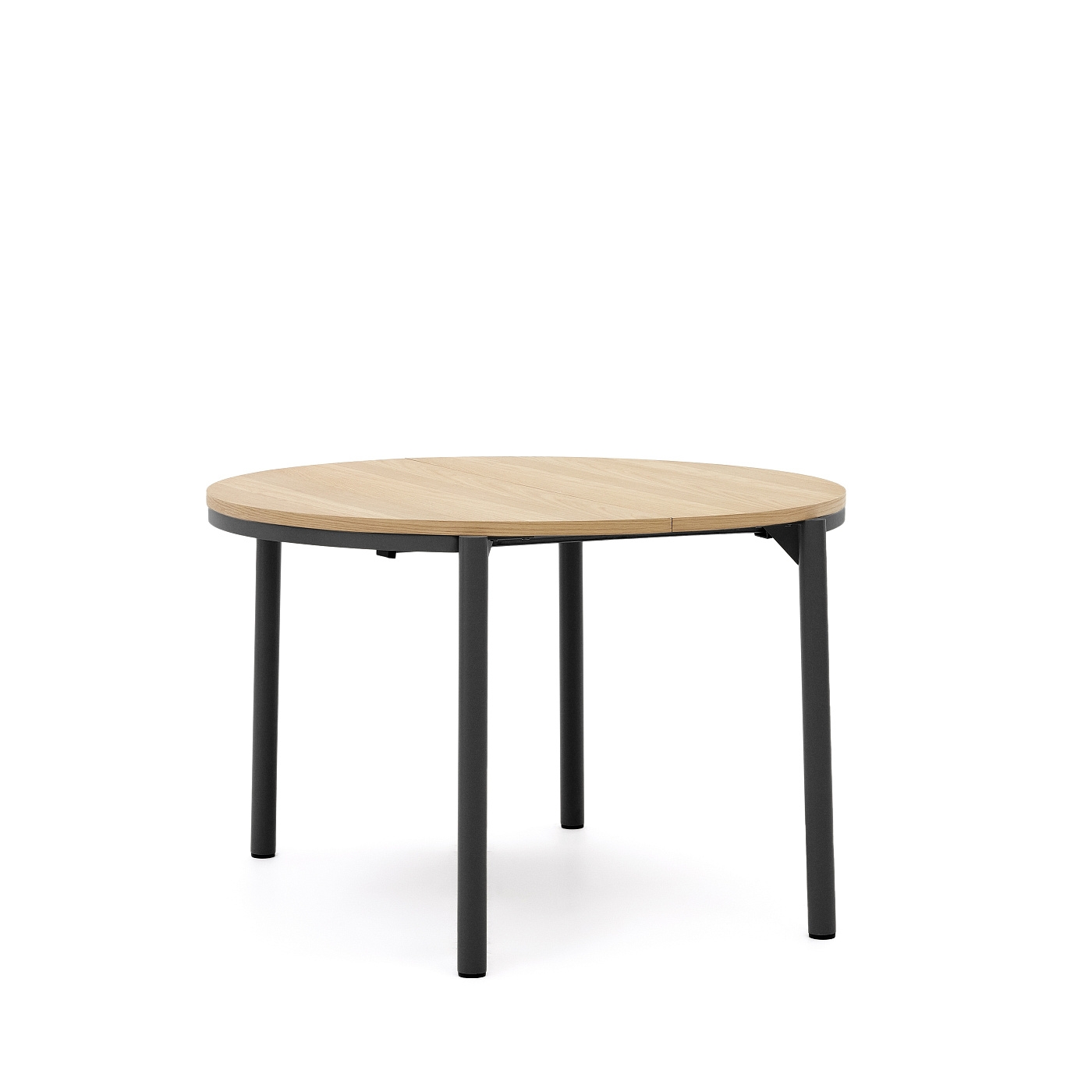 Montuiri раздвижной круглый стол из дубового шпона с черными ножками