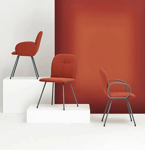 Мягкое кресло с металлическими ножками. Низкий кожух с мягкими подлокотниками. Обивка доступна в двух вариантах: стандартная или мягкая.