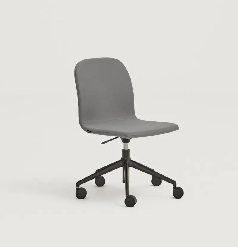 Мягкое кресло с алюминиевым основанием, поворотной системой, газовым подъемником и пятью спицами. Оборудовано поворотными роликами. Низкий корпус. Обивка доступна в двух вариантах: стандартная и мягкая.