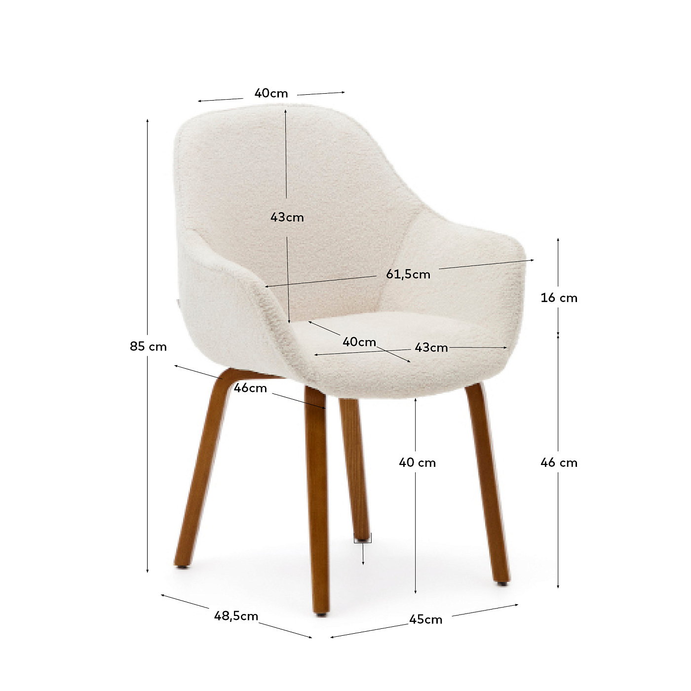 Aleli Стул из белой синели и ножками из ясеня с отделкой под орех