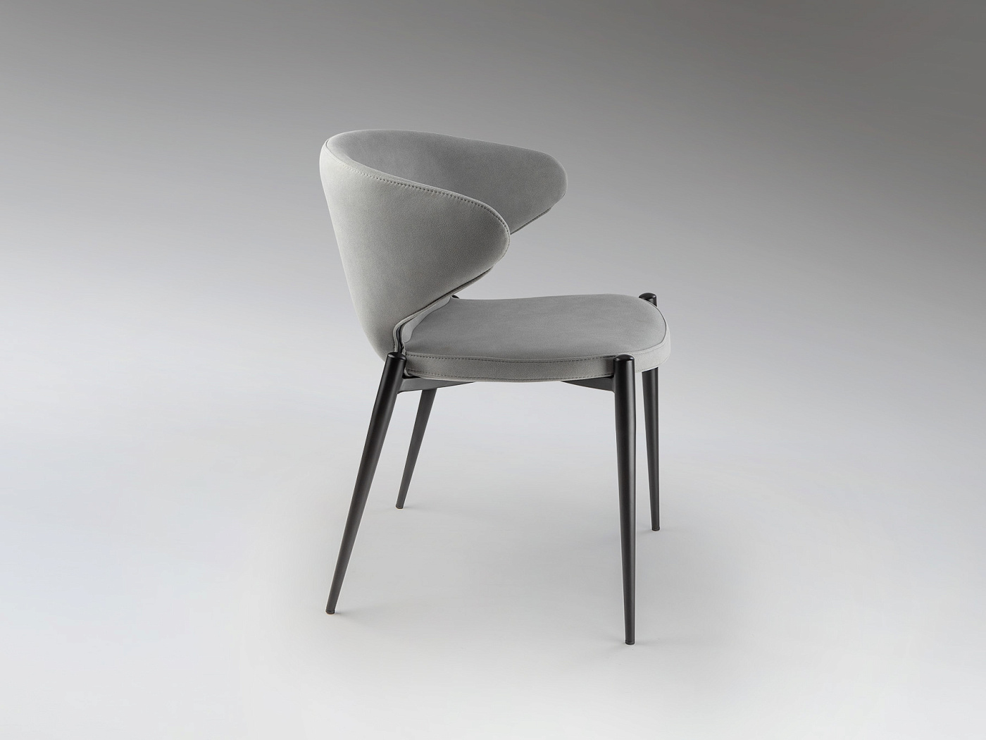 Стул из металла, матово-черная отделка. Сиденье и спинка из фанеры и поролона. Обивка из 100% полиэстера светло-серого цвета. Химчистка.