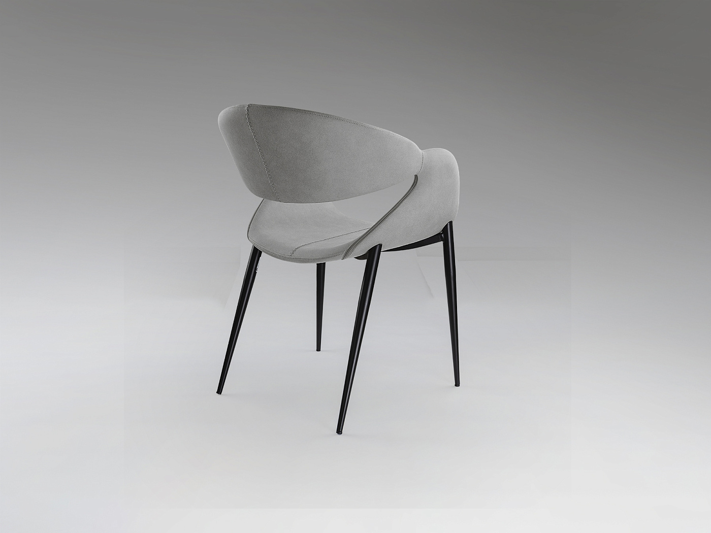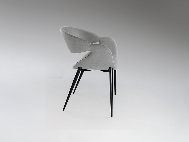 Кресло, обивка из 100% полиэстера цвета светло-серого камня, с декоративной строчкой. Химчистка. Металлические ножки с матово-чёрным покрытием. Сиденье и спинка из фанеры и поролона.