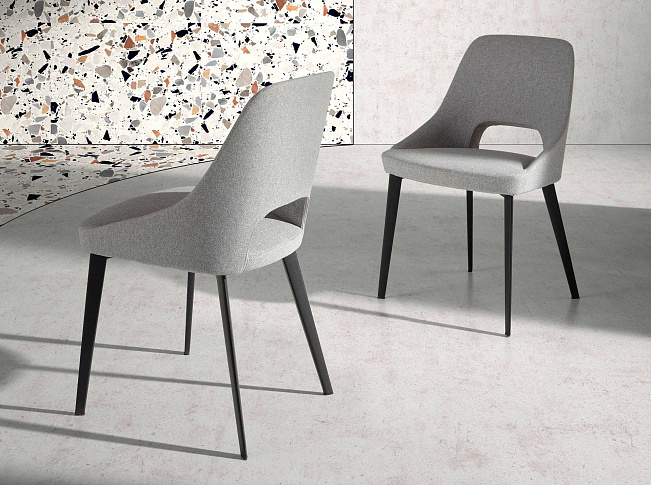 Обеденный стул A203 /4101 от фабрики Angel Cerda – удобная и современная модель для любого случая. Обеденный стул A203 непременно станет важной частью вашей обстановки. Его оригинальная спинка – эффектная деталь, которая цепляет взгляд и убеждает в незаурядности созданного дизайна. Комфорт вам обеспечит широкая, слегка откинутая назад спинка. А практичность – достоинство обивки. Восхищайтесь видом своей кухни! Стул сборный. Опора сделана из металла. Она окрашена в черный цвет матовой порошковой краской. На каждой ножке установлен защитный наконечник, который не портит напольное покрытие. Обивка тканевая, серого, цвета. Ее состав – 100 % полиэстер. Высокая стойкость к истиранию и выгоранию цвета обеспечивают длительную эксплуатацию, даже при интенсивных нагрузках, что является ценным свойством для эксплуатации на кухне. Наполнитель сиденья – синтетическая пена плотностью 25 кг/м3. Она обеспечивает длительный комфорт и хорошо держит форму. Общая максимальная нагрузка на стул не должна превышать 130 кг. Размеры: ширина – 50 см, высота – 81 см, глубина – 50 см. Вес изделия – 8 кг. Потребуется небольшая сборка. Чистку рекомендуется осуществлять деликатно, используя мягкое моющее средство и тканевую салфетку.