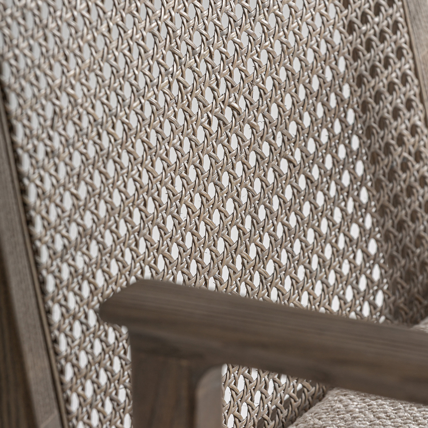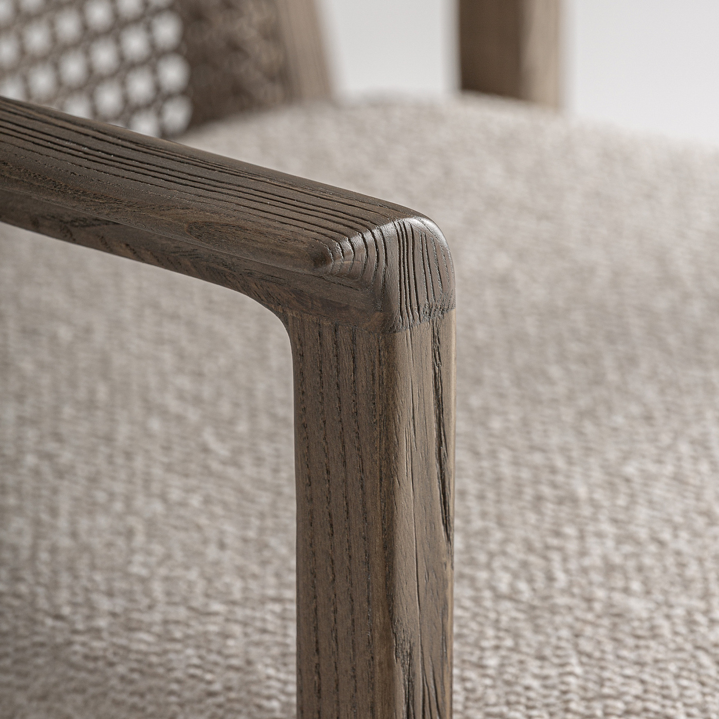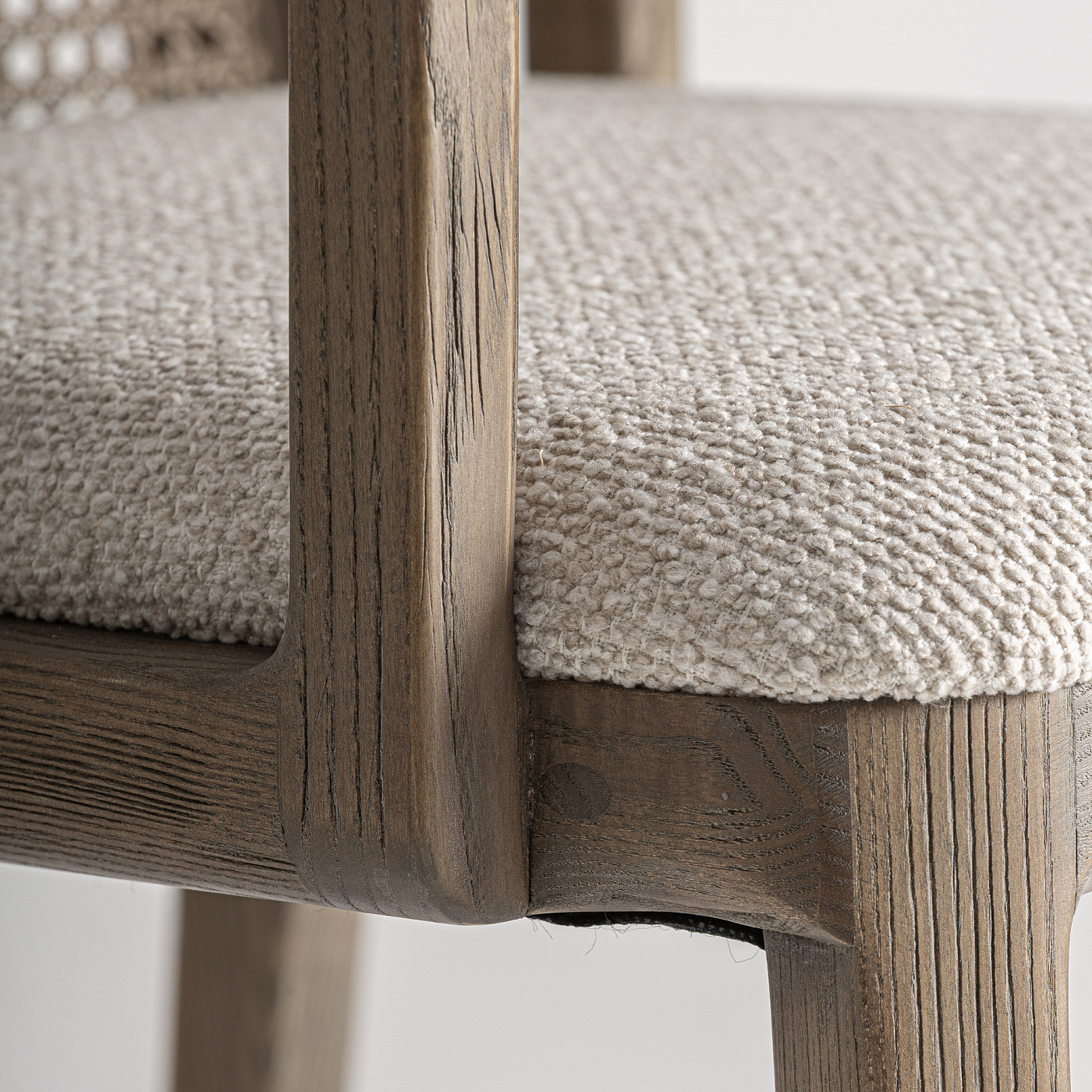 Стул из коричневого ясеня в сочетании с бежевым льном. Ширина: 57 см, Глубина: 60 см, Высота: 86 см