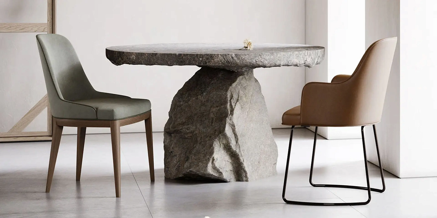 Granite Стул на 3 ножках из терракотового шенилла и массива ясеня в натуральной отделке
