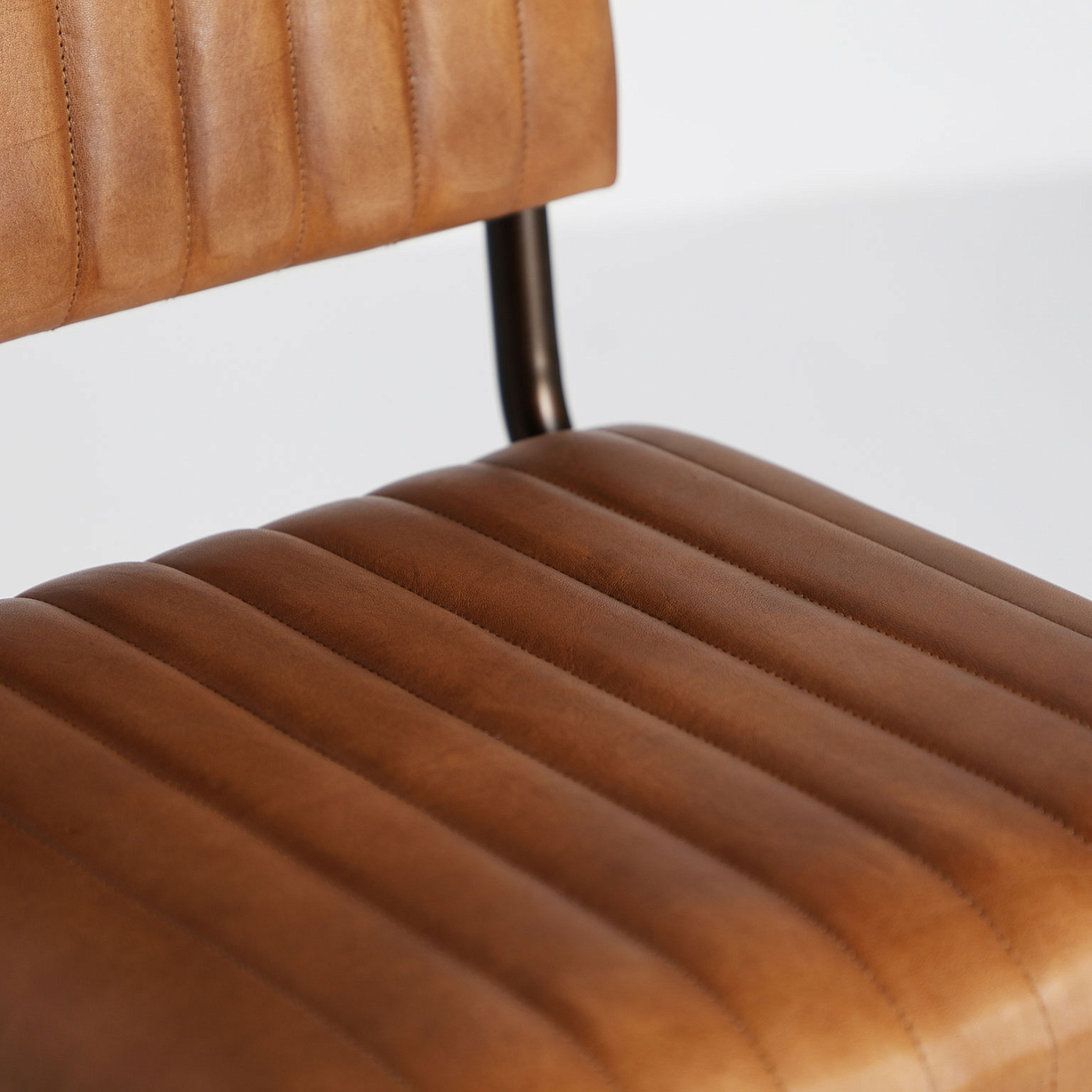 Стул Chadron от дома VICAL с его железной конструкцией и коричневым сиденьем из козьей кожи обещает стать главным героем любого пространства. Размеры кожаного и металлического стула 44x56x85 см обеспечивают удобную позу, а его дизайн привносит индустриальный и изысканный оттенок в ваш дом.