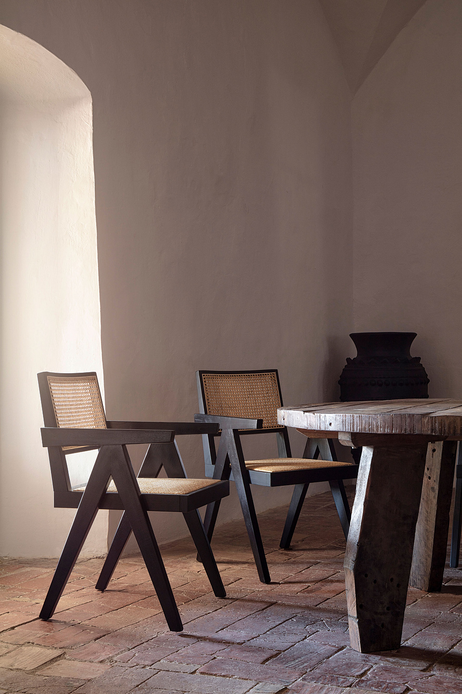 Granite Стул на 3 ножках из терракотового шенилла и массива ясеня в натуральной отделке