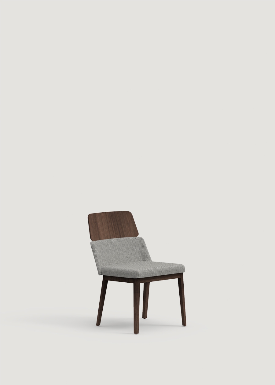 Стул с основанием из массива дерева, доступен в буке и натуральном дубе или с различными морилками. Спинка состоит из верхнего деревянного модуля и нижнего обитого модуля, доступного в различных тканях. Дизайн коллекции Concord подходит как для жилых, так и для контрактных помещений.