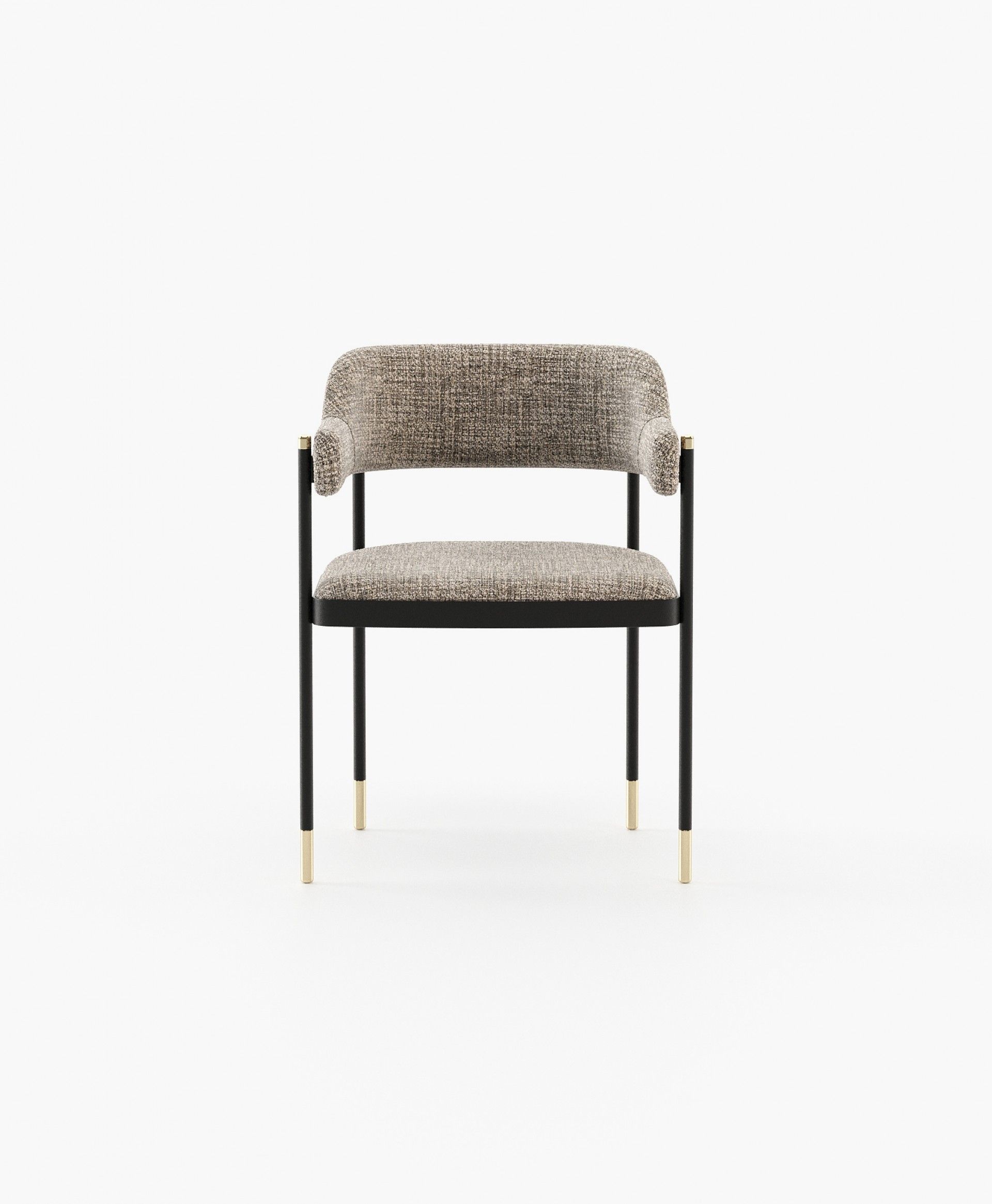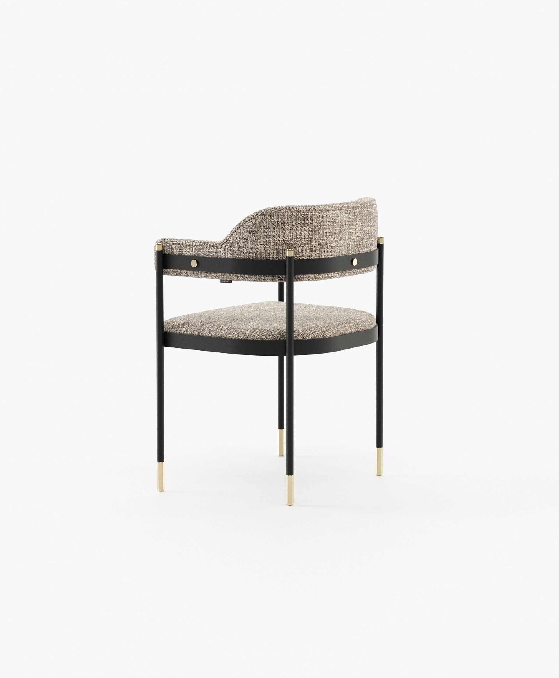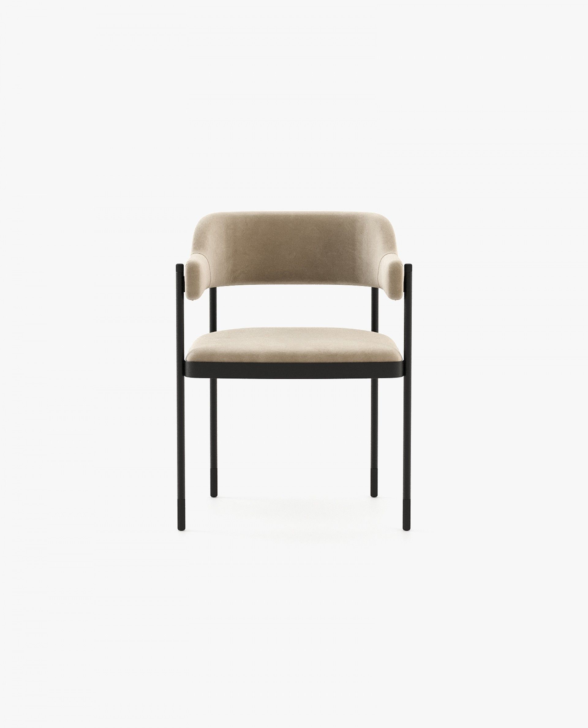 Dale - это потрясающее винтажное кресло с выпуклой спинкой и подлокотником. Он представляет собой кованую железную конструкцию с металлическими ножками, включенными в гладкую ткань сиденья и спинки.