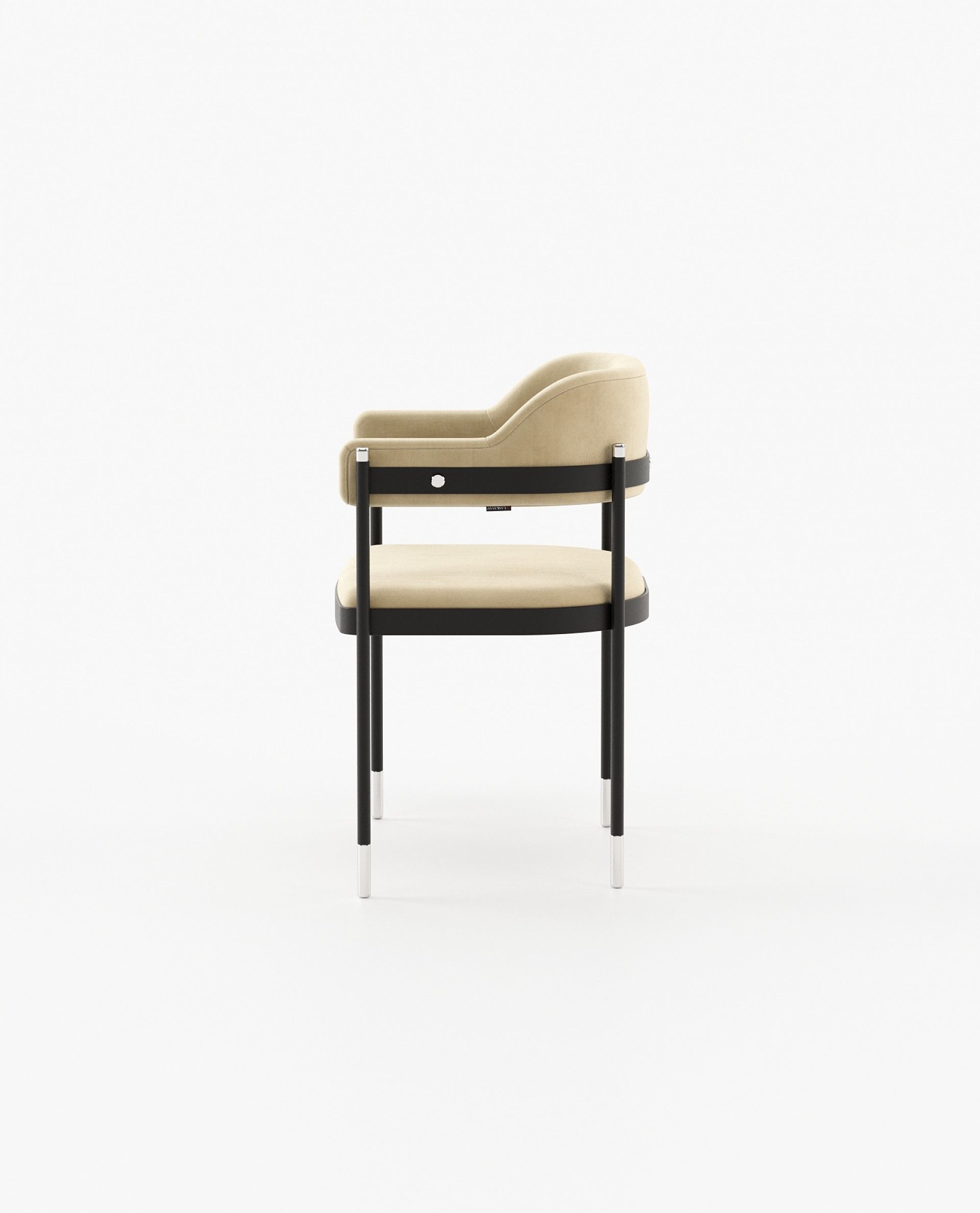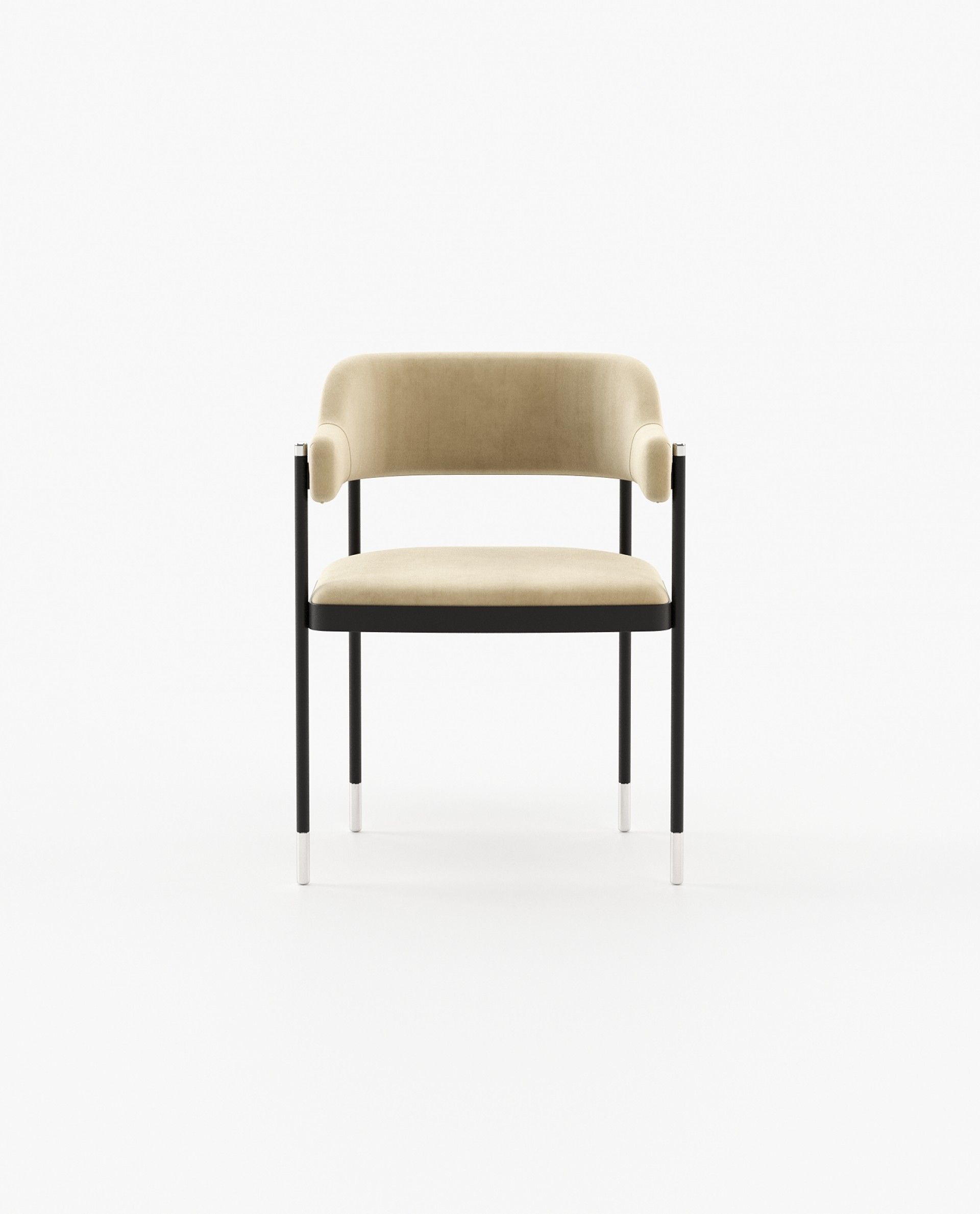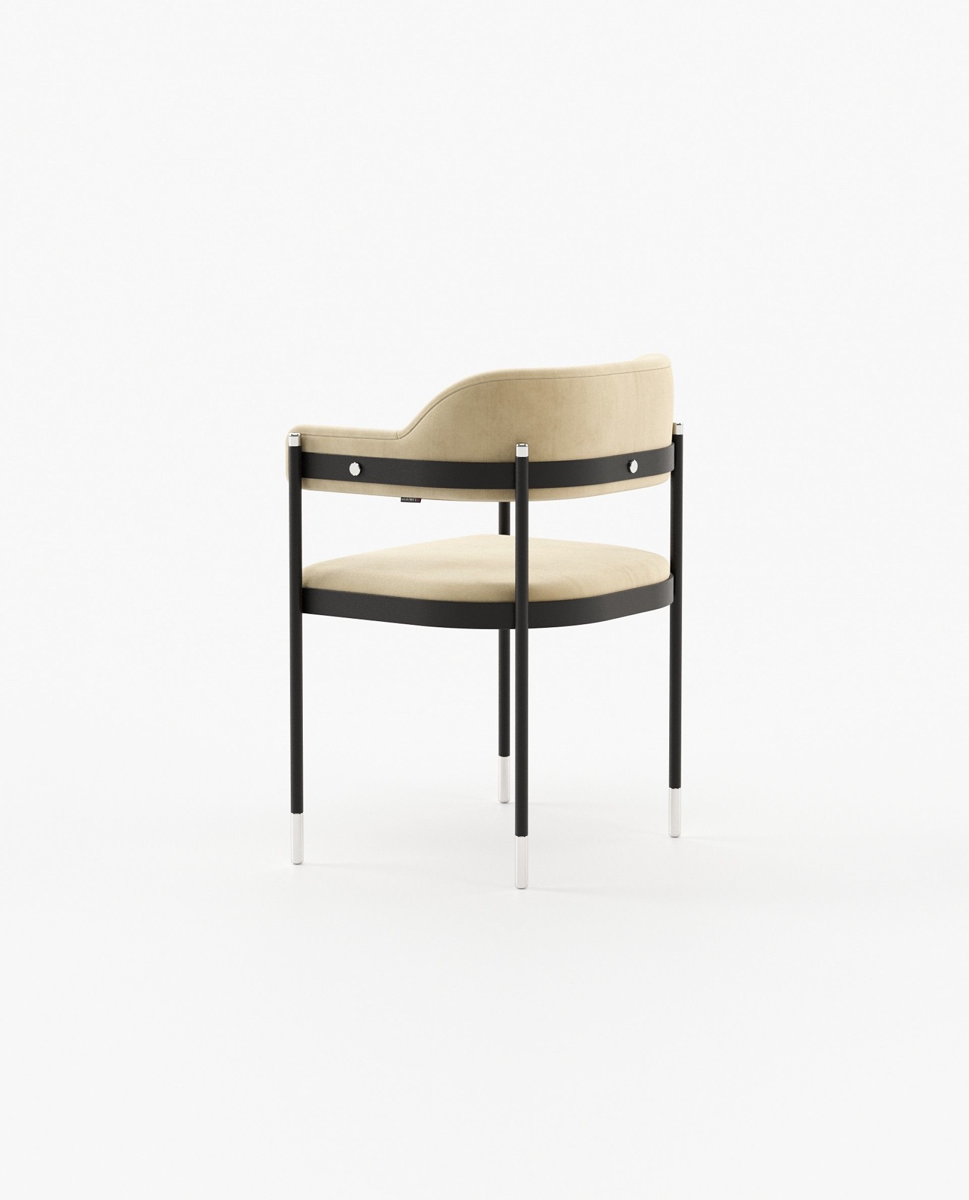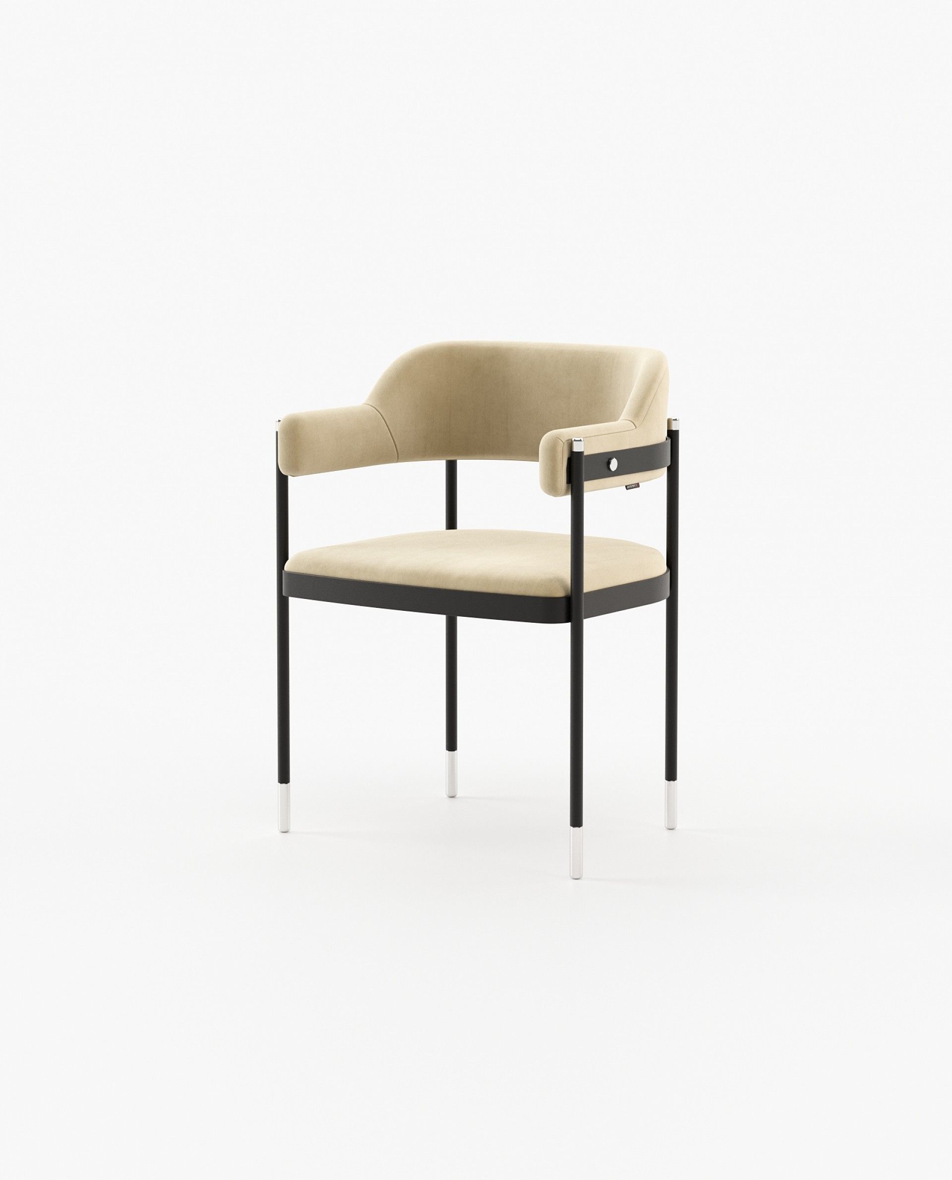 Dale - это потрясающее винтажное кресло с выпуклой спинкой и подлокотником. Он представляет собой кованую железную конструкцию с металлическими ножками, включенными в гладкую ткань сиденья и спинки.