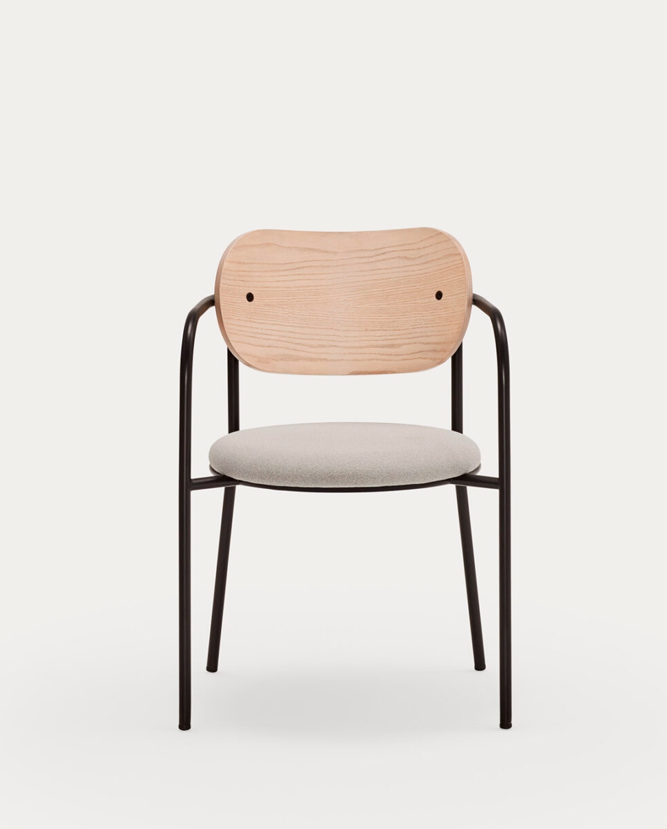 Aleli Стул из белой синели и ножками из ясеня с отделкой под орех