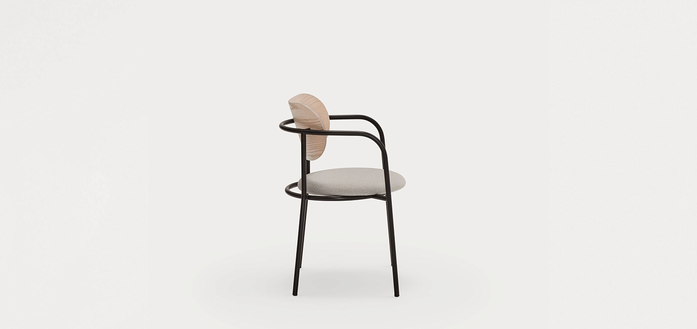 Eclipse вдохновлен явлением, давшим ему название. Такое сочетание смещенных окружностей стало отправной точкой для создания этой коллекции, в результате чего произошло смещение между мягким сиденьем и металлической конструкцией, на которую оно опирается.