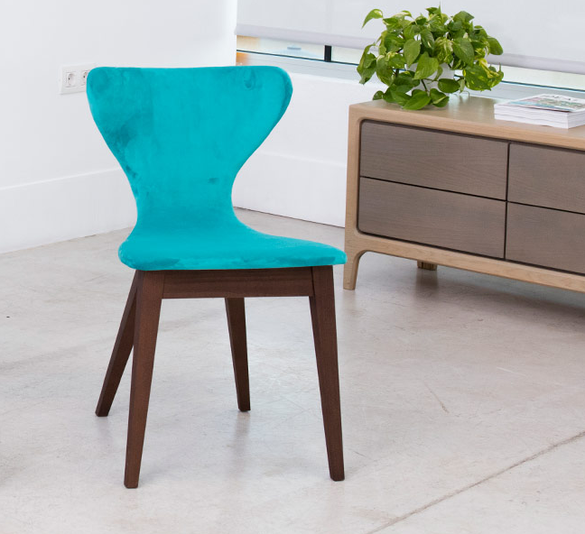Стул Nelida из зеленой синели с ножками в темной отделке