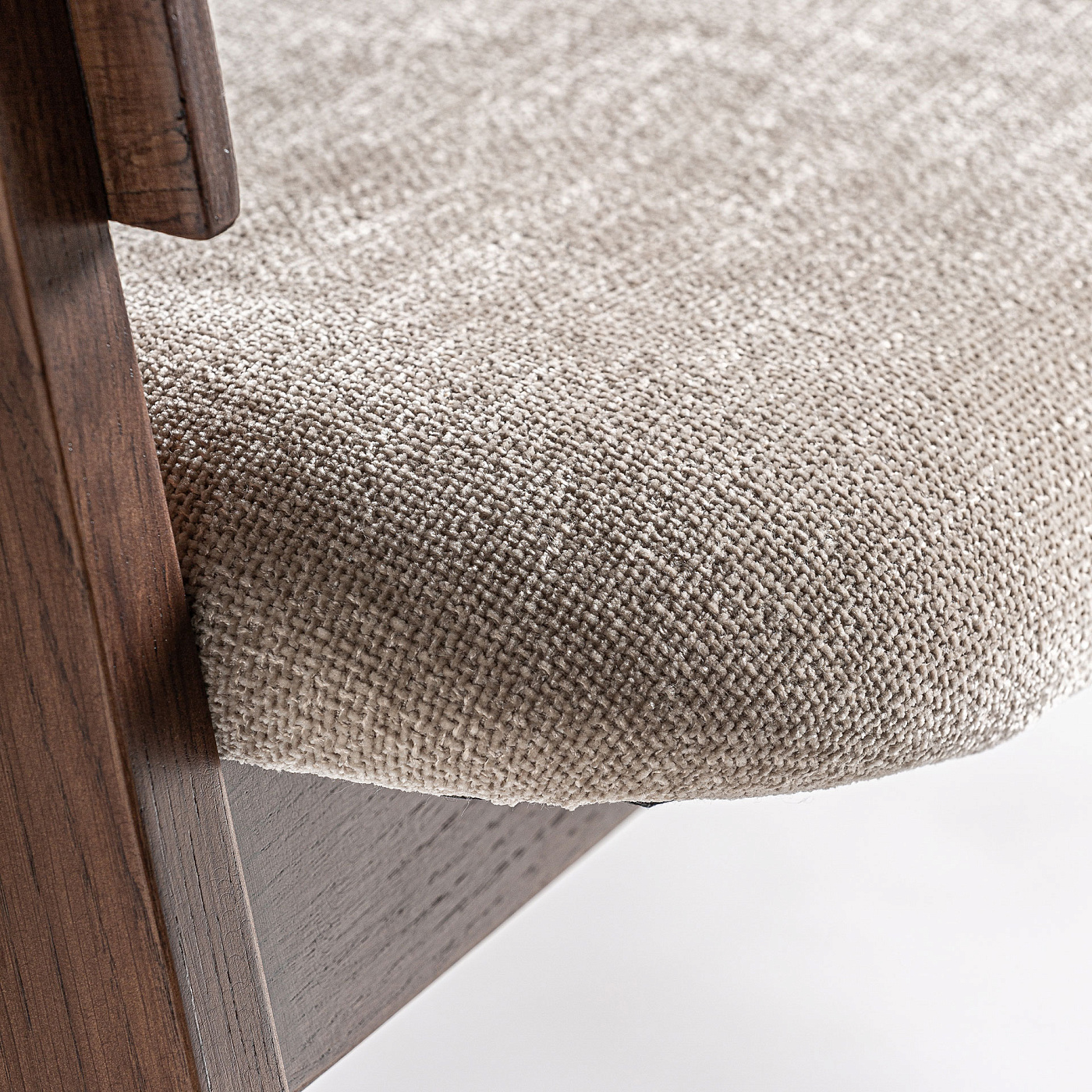 Стул Madiran, коричнево-бежевый цвет, колониальный стиль. Изготовлен из древесины дуба в сочетании с полиэстером.