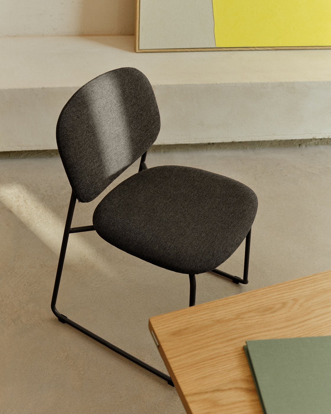 Стул Meli из серого шенилла с серыми металлическими ножками
