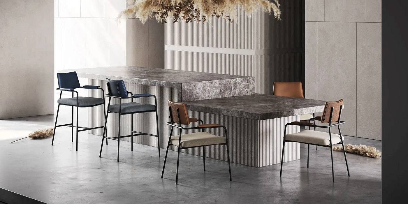 Металлическая конструкция и необычные формы превращают кресло Stranger в центр любого проекта. Прочные черные текстурированные стальные трубы конструкции контрастируют с мягким сиденьем, спинкой и подлокотником с мягкой обивкой. Все детали объединены, чтобы вы могли наслаждаться дополнительным комфортом сидения, включая золотые детали из нержавеющей стали на конструкции. Симметричные формы стула Stranger добавляют изюминку в декор, и он также доступен в версиях барного стула и стула для стойки.