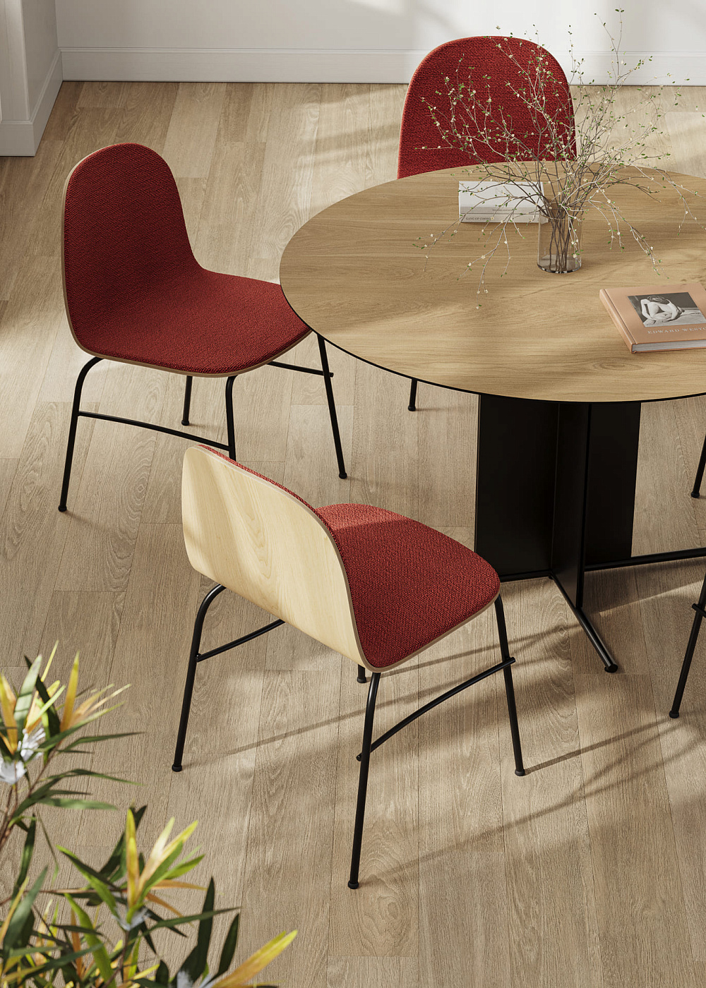 Granite Стул на 3 ножках из терракотового шенилла и массива ясеня в натуральной отделке