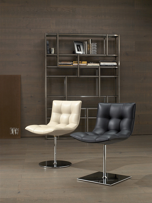 Стулья из коллекции Turkana отличаются оригинальным дизайном и предназначены для использования в интерьере, как жилых, так и офисных помещений. Они доступны в двух вариантах: с вращающимся или фиксированным сиденьем. В качестве обивки используется кожа либо ткань. Основание изготовлено из алюминия и стали и покрыто матовым или зеркальным хромом. Форма основания может быть либо круглой, либо квадратной.