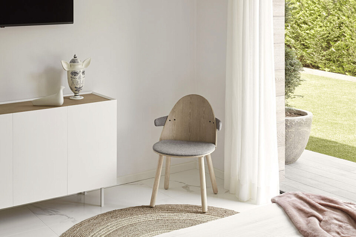 Стул Uma стремится поразить своей эстетикой. Оно рождено тонким сочетанием изогнутых и прямых линий и стремлением к простоте и визуальной легкости, не отказываясь при этом от комфорта.