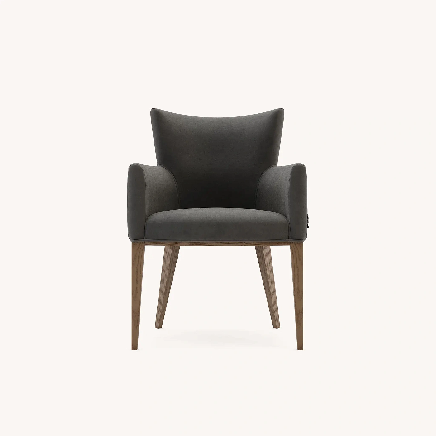 Воплощение комфорта, лучшее описание стула Vianna. Мягкое сиденье и подушка для спины, поддерживаемые четырьмя деревянными ножками, создают идеальный аксессуар как для дома, так и для общественных мест. Доступен в двух версиях, с подлокотниками или без них, верхняя часть спинки выгнута наружу для максимального расслабления. Изысканная окантовка по краям придает дизайну вневременной штрих. Стул Vianna — это классический дизайн с современными элементами, что делает его идеальным выбором для любого дизайнерского проекта.