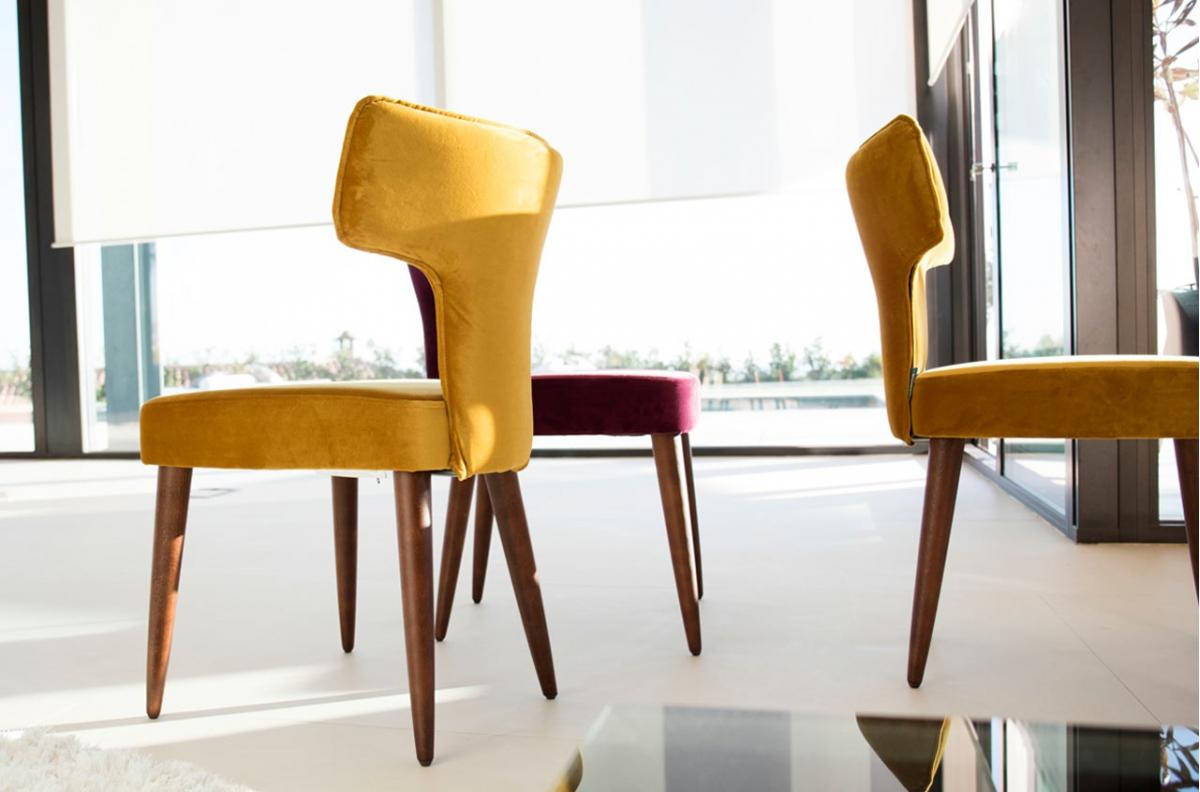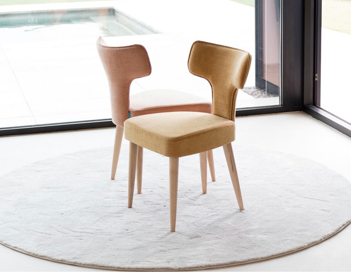 Гибкая спинка, обеспечивающая потрясающий комфорт. Могут быть использованы как обеденные стулья или как дополнительные сиденья рядом с диваном. Также как вешалка для одежды. Они могут быть в комплекте с диванами. Доступны в более чем 1000 экземплярах тканевой обивки и 101 кожаной. Съемная спинка и ножки для уменьшения объема при транспортировке.