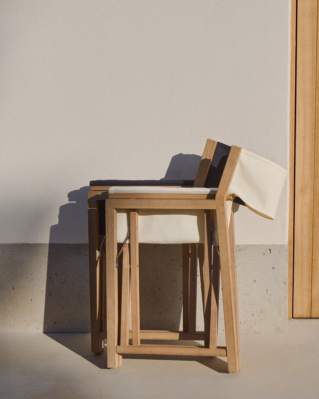 Складной стул Vilara для улицы из акации и текстиля белого цвета