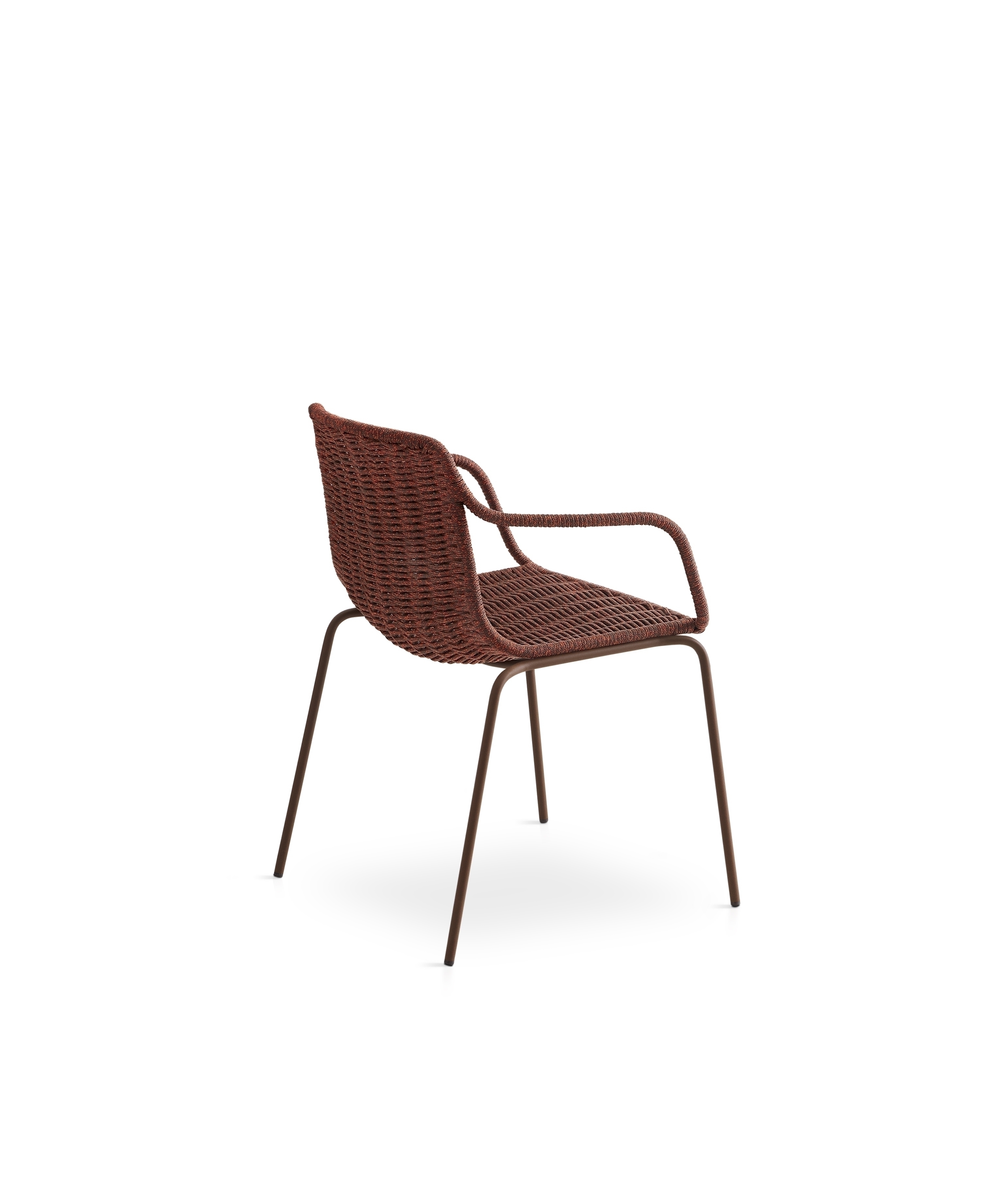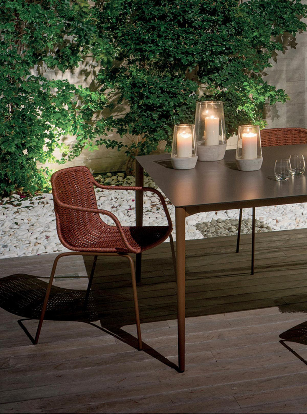 Обеденное кресло из трубы из нержавеющей стали. Сиденье и спинка ручной работы с высокопрочной веревкой толщиной 7 мм/0,27 дюйма. Ножки из лакированной трубы из нержавеющей стали. Штабелируемый..