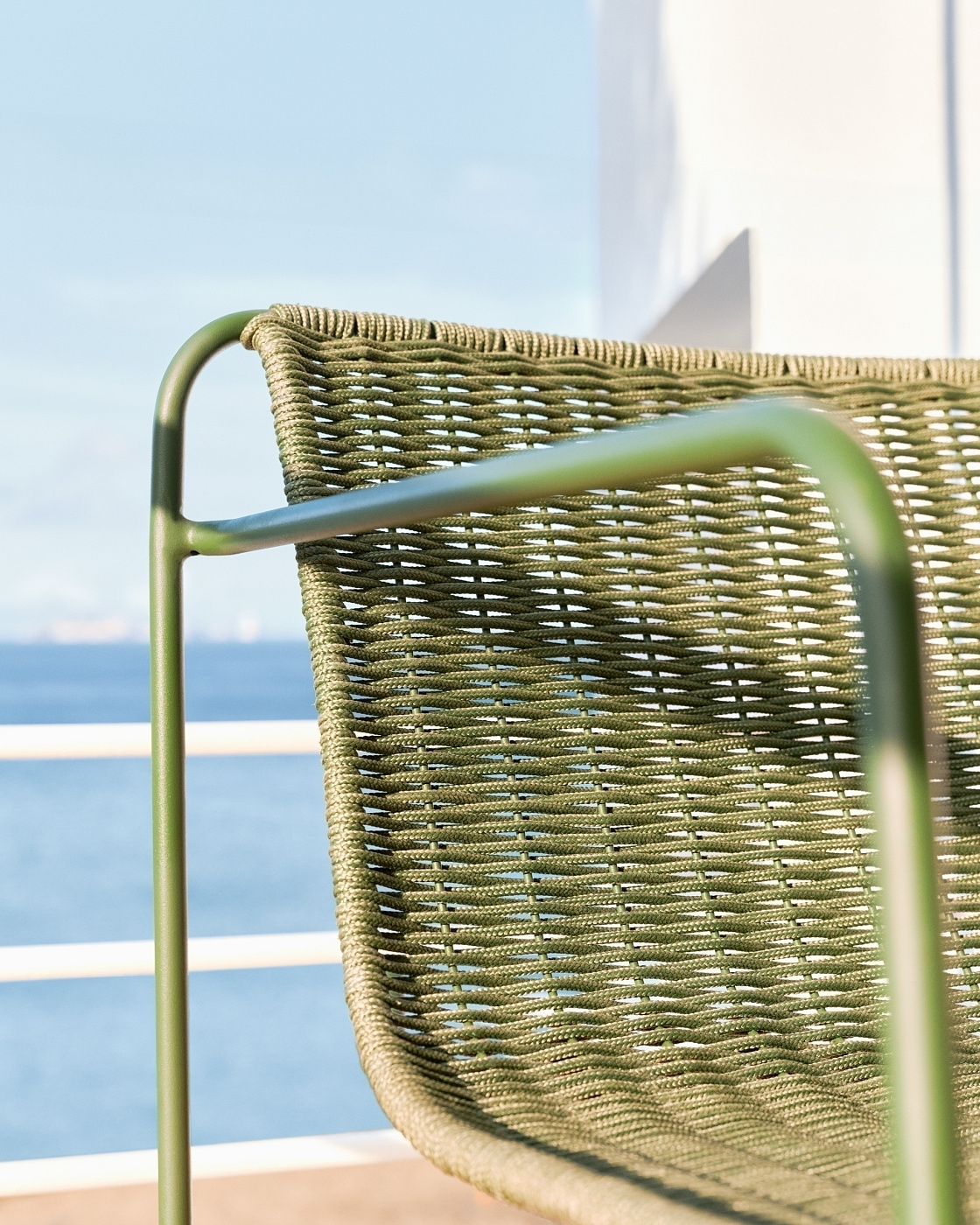 Стул Maurina из зеленой оцинкованной стали и зеленой веревки