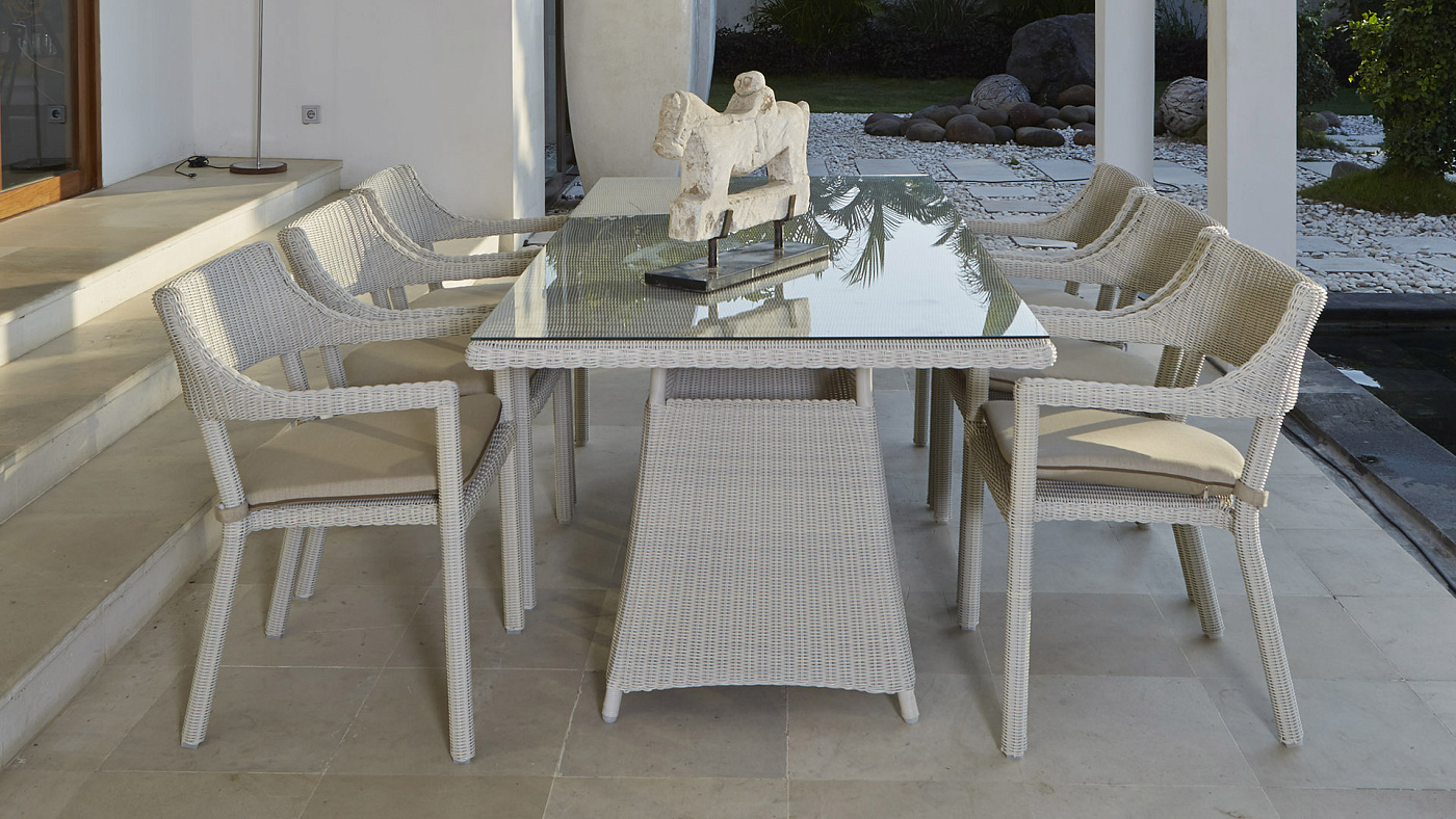 Удобная, лёгкая и красивая классика в наилучшем исполнении. Высота спинки позволяет полностью положить голову, достигая максимальной комфортности при отдыхе. Закруглённые линии и оригинальное ажурное плетение делают эту коллекцию абсолютно востребованной, когда речь идёт об украшении дома, террасы или зоны у бассейна.
