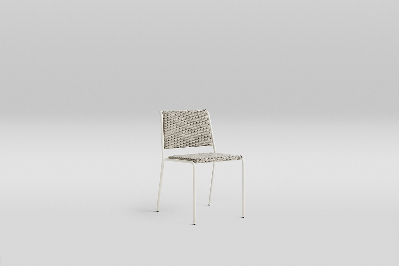 Штабелируемый стул с алюминиевой рамой с порошковым покрытием. Сиденье и спинка из синтетического волокна Shintotex® или полиэфирного каната толщиной 4 мм. Алюминиевая отделка цвета Metallic Grey 56. Синтетическое волокно Shintotex® четырех цветов: белый, серебристо-серый, каштановый коричневый, темно-серый. Канатная отделка трех цветов: бежевый, жемчужно-серый, графит.
