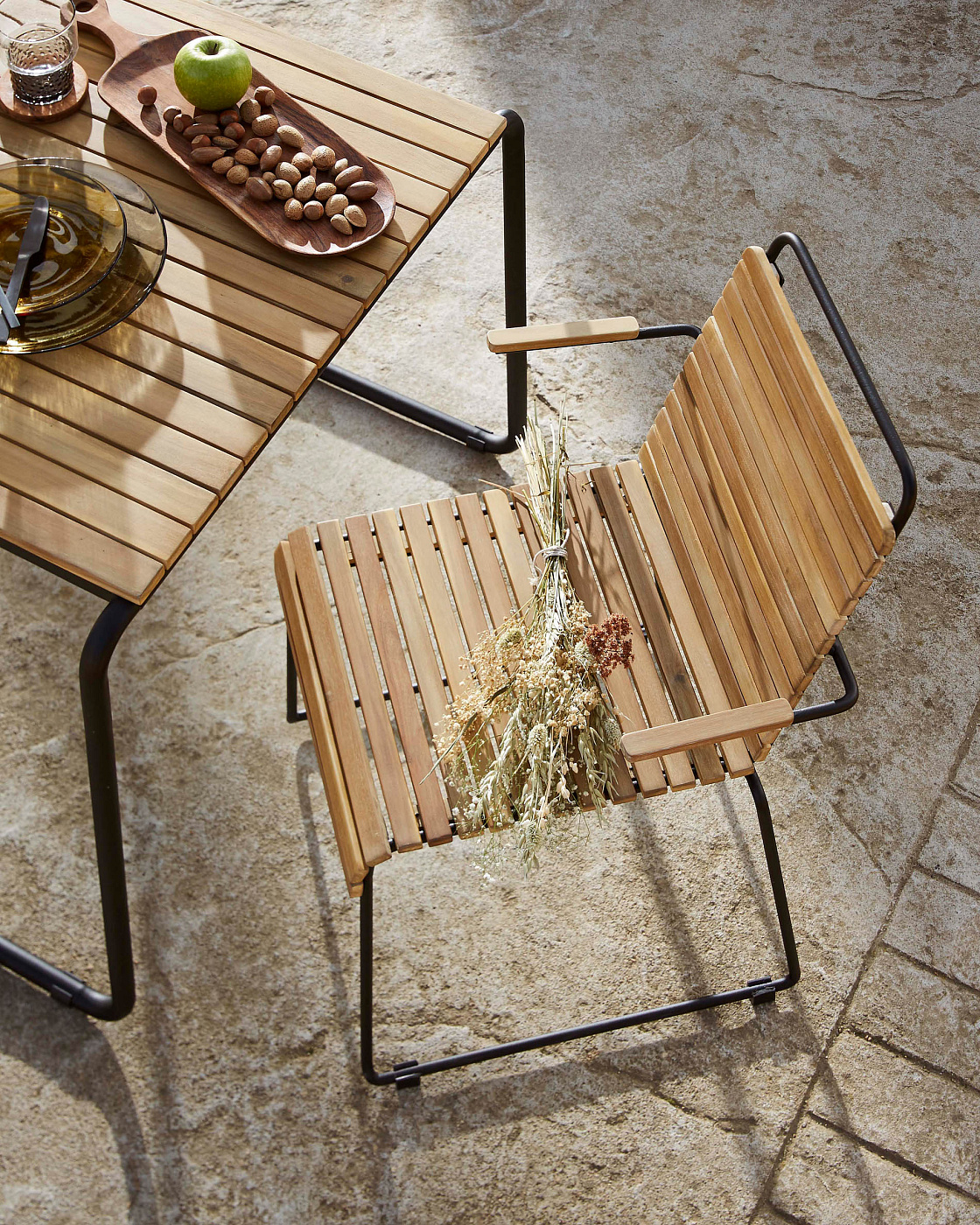 Стул Yukari отлично подойдет как для наружного, так и для внутреннего использования. Его конструкция изготовлена из оцинкованной стали, а сиденье из массива акации. Оба материала уверенно противостоят влаге и ультрафиолету. Поэтому этот дизайнерский образец может стать частью обстановки на вашей террасе.
