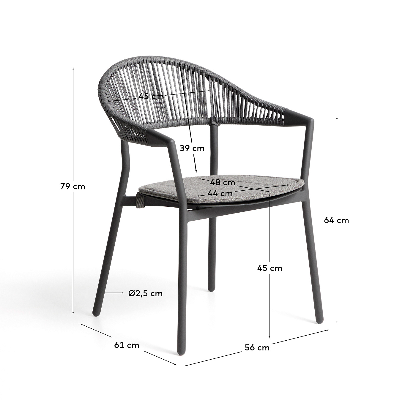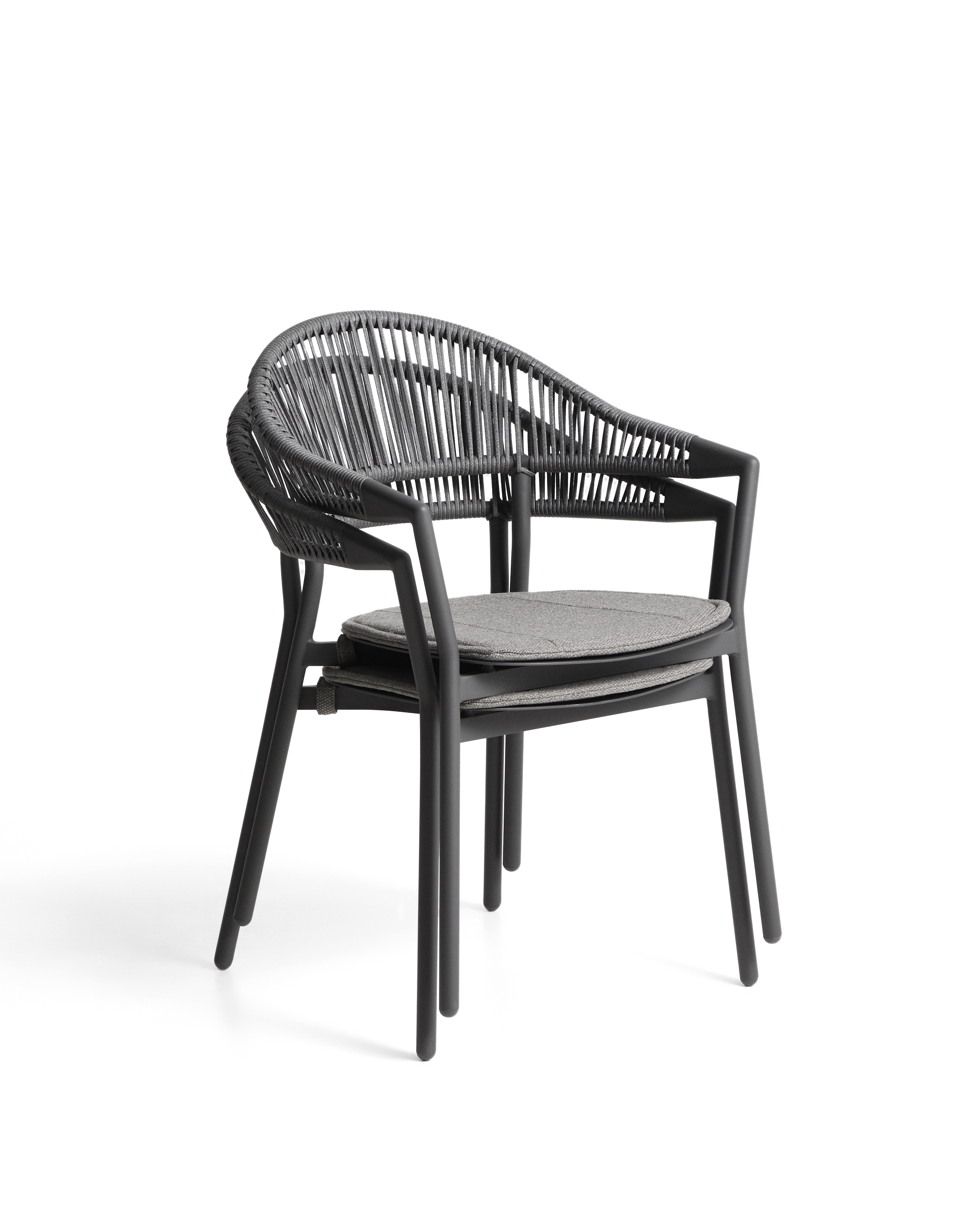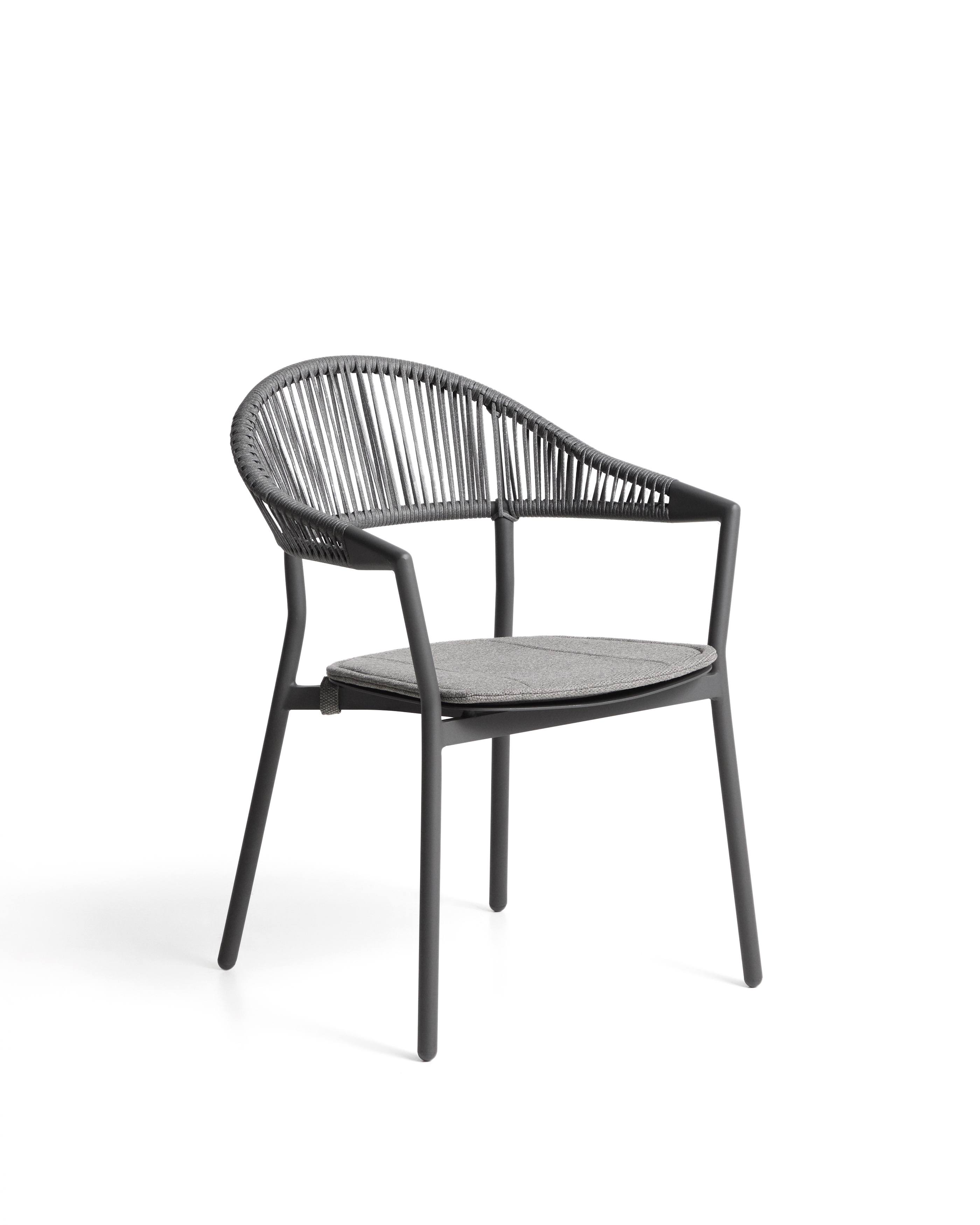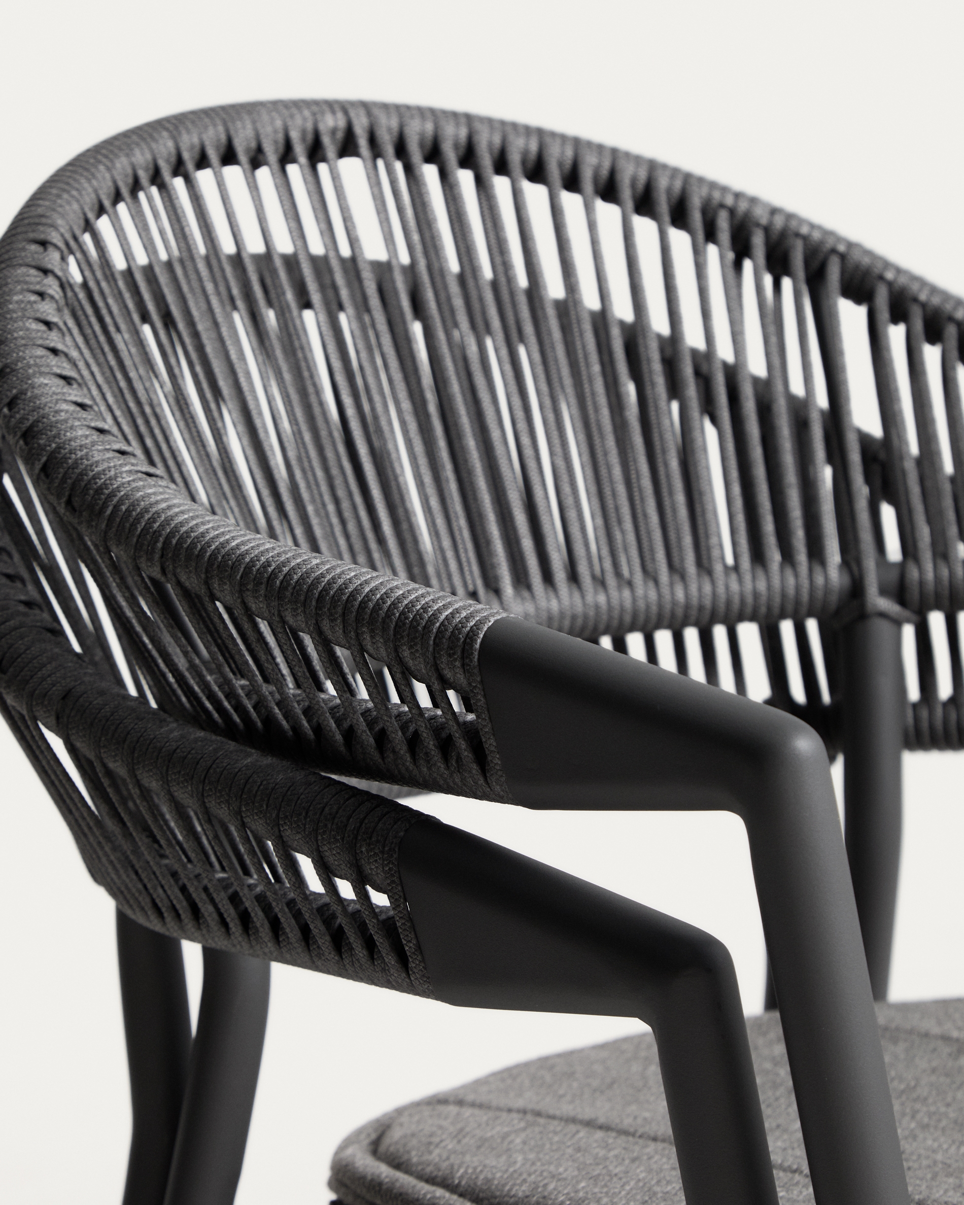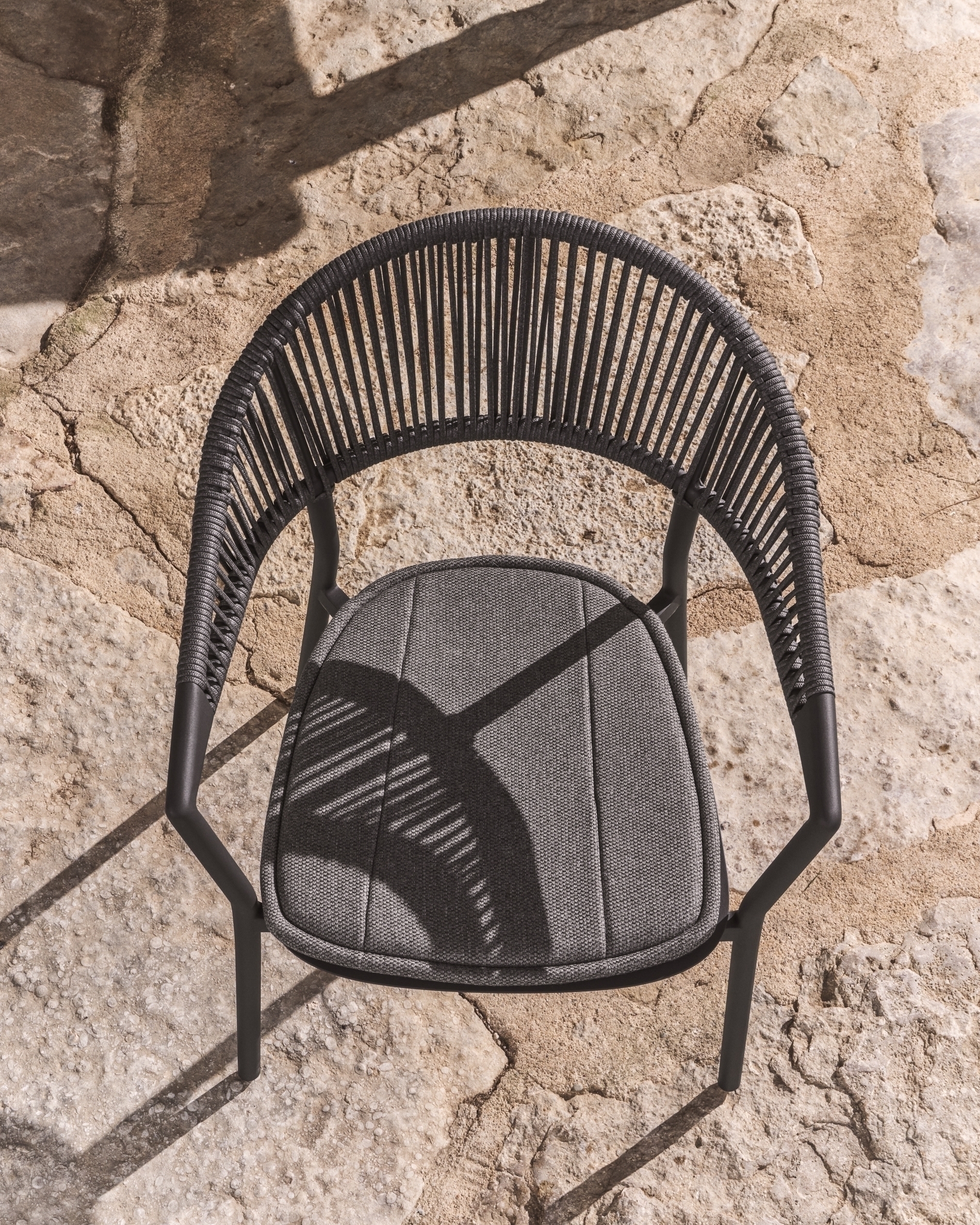 Уличный стул Alimia из графитового алюминия с серой веревкой
