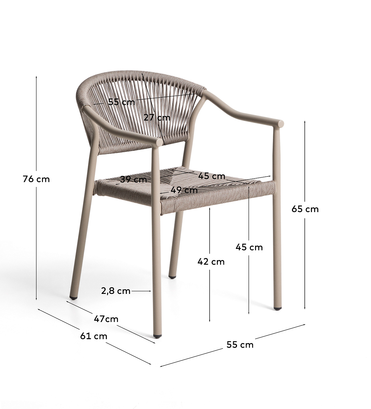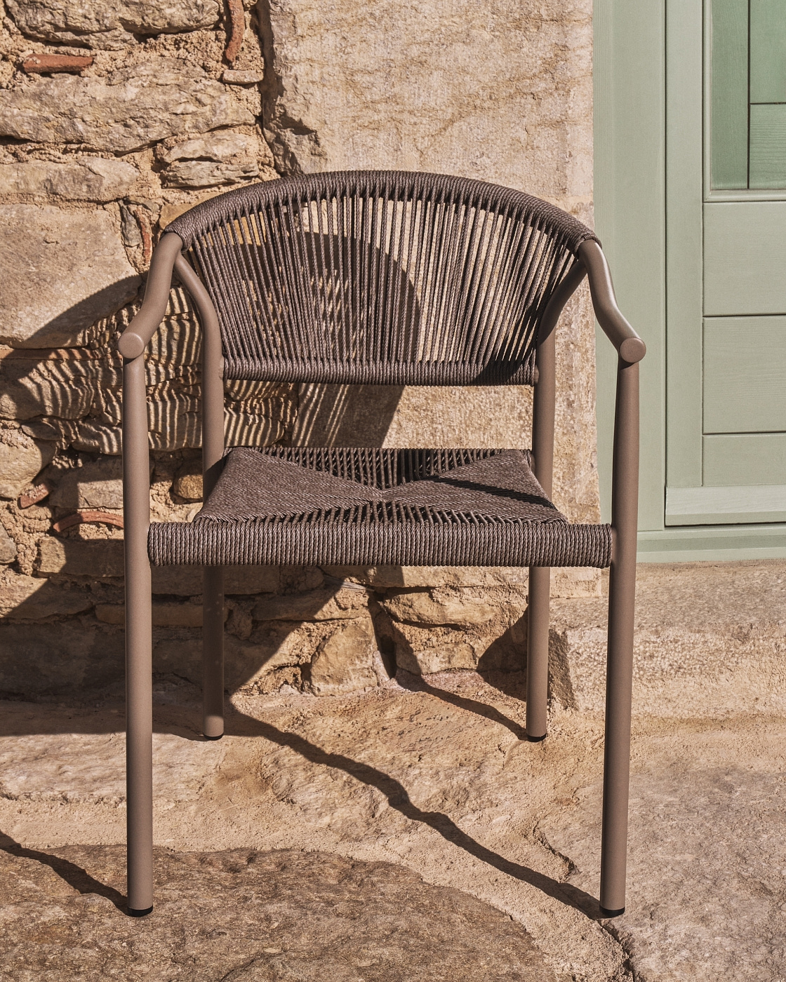 Уличный стул Livadia из алюминия цвета таупе и веревки